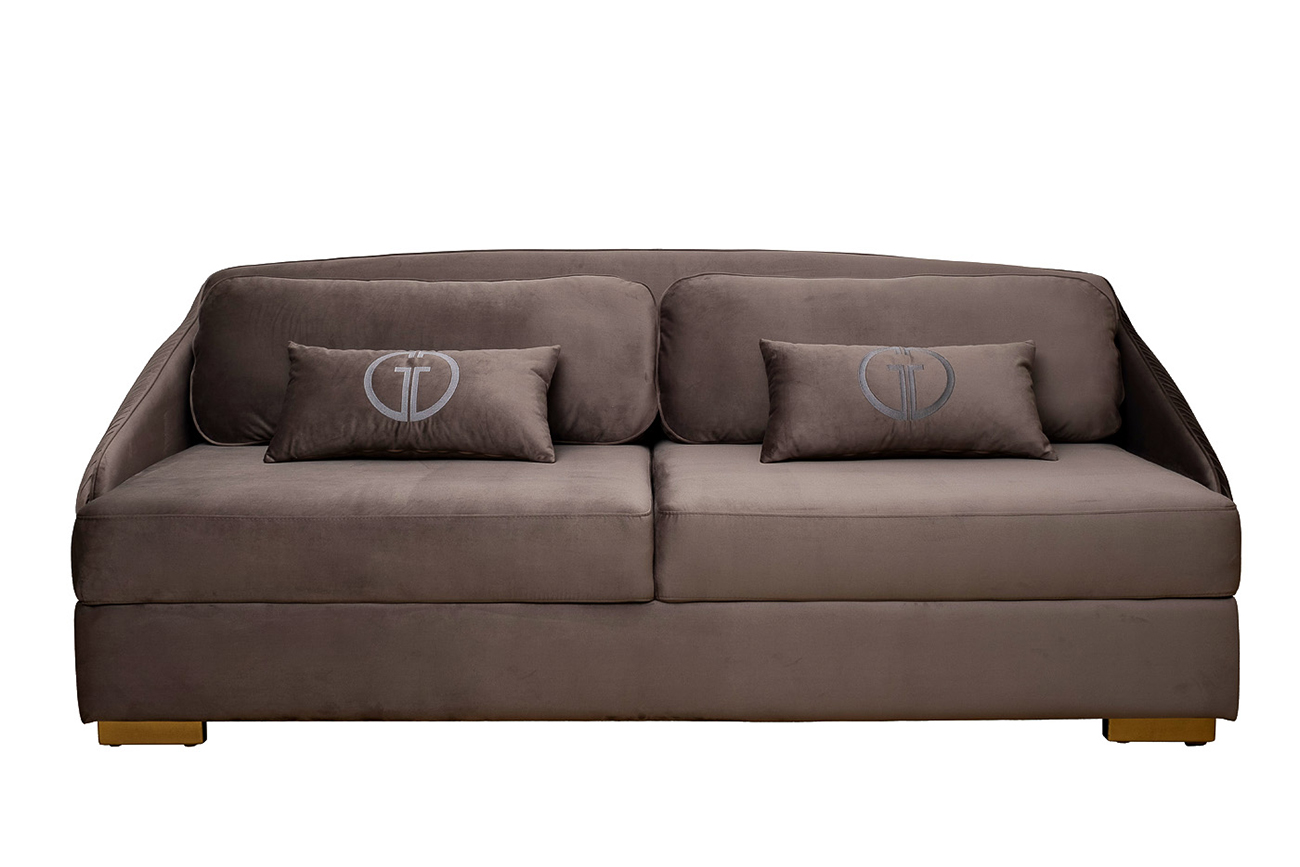Трехместный прямой диван Palazzo стал воплощением роскоши и элегантного шика. Выполнен в лучших традициях стиля ар-деко – мягкая обтекаемая форма, уютные декоративные подушки, обивка из дорогого текстиля. Современный механизм-трансформер «ПУМА» за секунды превращает диван в двуспальную кровать для комфортного сна. Каркас выполнен из дерева, что повышает надежность, выносливость и долговечность мебели. Диван трехместный раскладной Palazzo 240М, разработка студии GARDA STUDIO. Габариты дивана: длина- 2400мм, глубина- 1050мм, высота- 950мм. Габариты сиденья дивана: длина-1770мм, глубина-550мм, высота- 460мм. Механизм трансформации- ПУМА. Габариты спального места: 2100мм*1360мм.