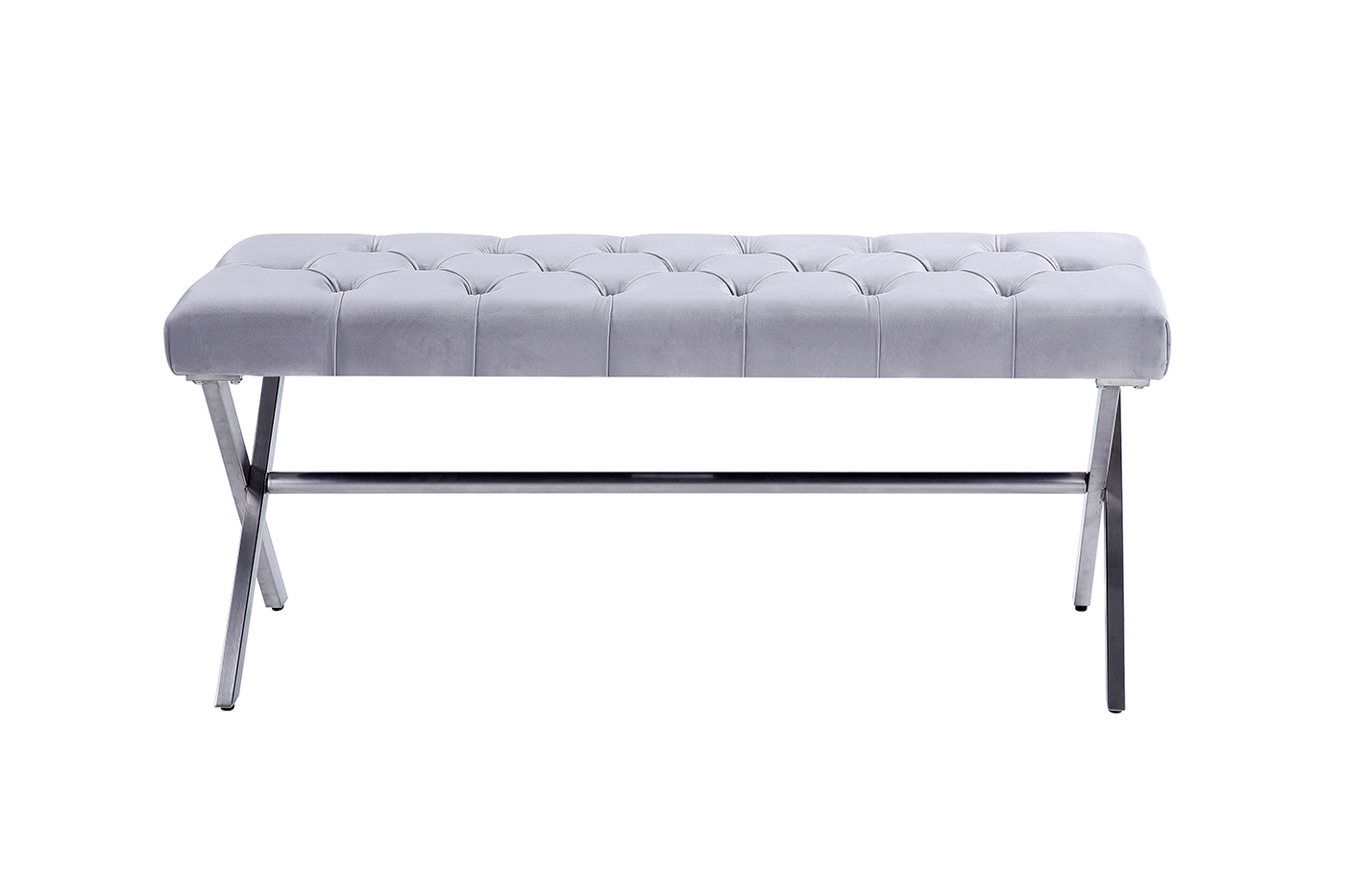 Серая велюровая банкетка может стать стильным дополнением спальни или практичной удобной мебелью для прихожей. Легкое, но прочное основание из металла и обивка из 100% велюра благородного серого цвета делают эту модель универсальным решением для любого современного интерьера. Элегантная банкетка на металлических ножках комфортная в использовании, устойчивая и долговечная за счет материалов первоклассного качества.