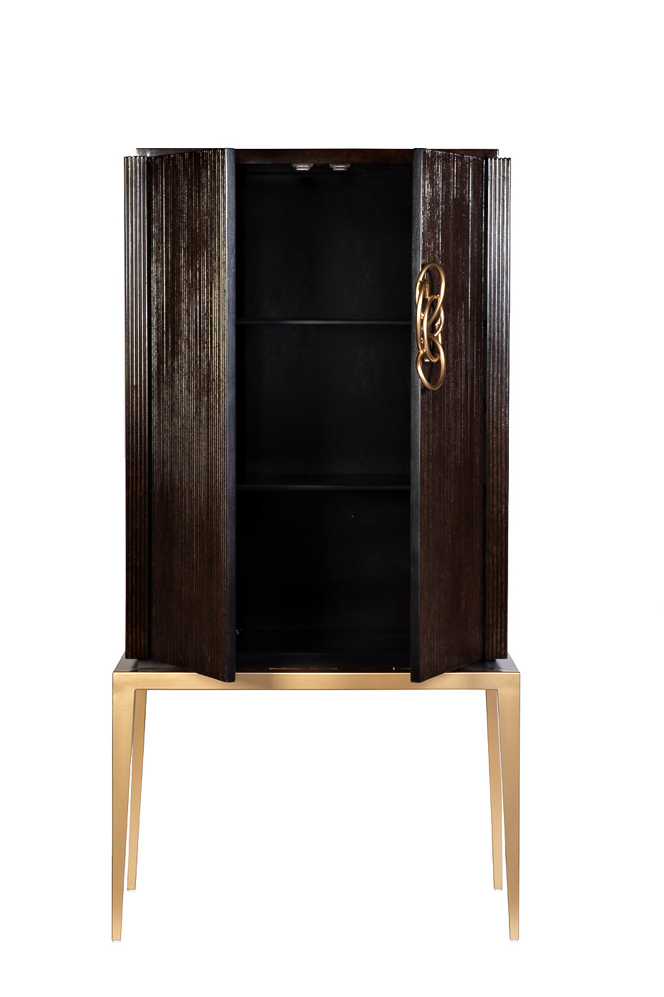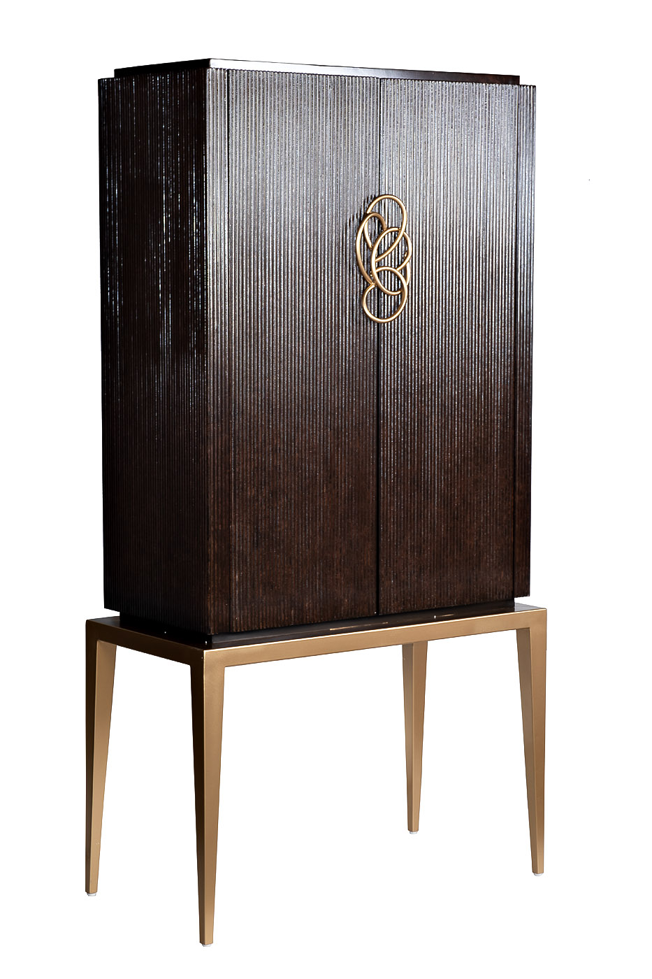 Роскошный двухдверный комод на высоких ножках станет настоящим украшением вашей гостиной, столовой или спальной комнаты. Рельефный корпус комода отделан под мореную вишню, металлические ножки и основание выкрашены в красивый цвет старого золота. Распашные дверцы, украшенные затейливой дизайнерской ручкой золотого цвета, открывают доступ к вместительному отделению, разделенному на три части двумя полками. Комод прекрасно подойдет для хранения постельного и столового белья, посуды, одежды или коллекции спиртных напитков. В комплект входит стеклянная столешница, чтобы вы могли поставить вазу или статуэтку, не опасаясь царапин или потеков. Все поверхности комода тщательно залакированы и прокрашены вручную. Темно-вишневый комод в стиле ар-деко обладает буржуазным обаянием и сдержанным шиком. На нашем сайте вы найдете журнальные столы и комод из серии 2706, чтобы создать прекрасный мебельный ансамбль в гостиной или спальне.