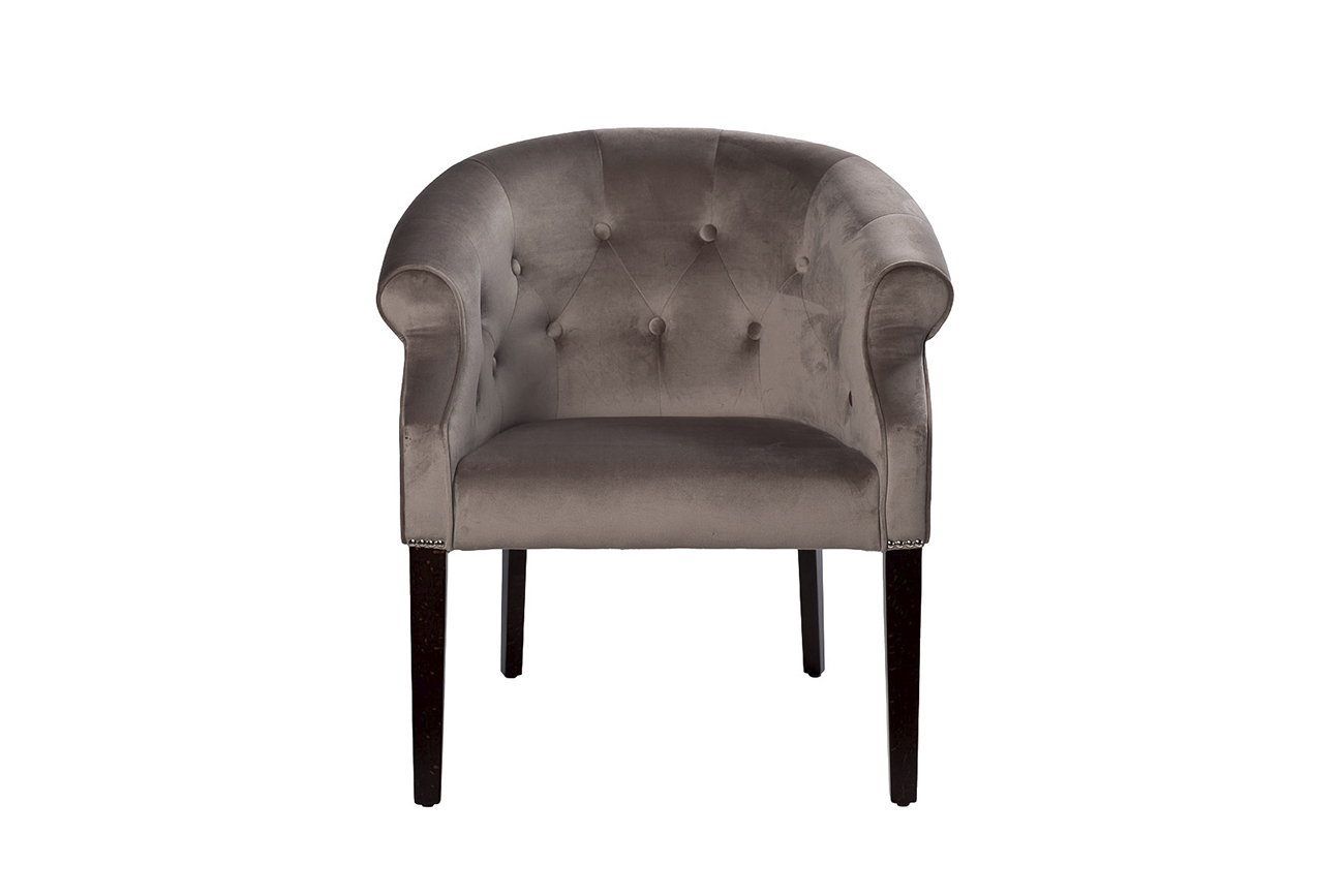 Кресло BUONO в исполнении: обивка - велюр Bella42 крем-брюле с отделкой декоративными гвоздями цвет -хром. Опоры-цвет №5. Габариты изделия: ширина-710мм, глубина- 660мм, высота- 770мм; габириты сиденья: ширина-450мм,глубина-450мм,высота-450мм