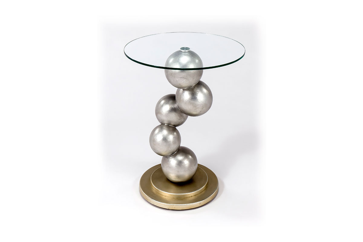 Если вам нравятся эффектные предметы интерьера, этот дизайнерский журнальный столик станет для вас настоящей находкой! Фантастическая опора из шаров серебристого цвета сохраняет баланс вопреки законам гравитации. Столик украсит интерьер в стиле хай-тек, также станет изюминкой дизайна в традиционном стиле. Предметы на стеклянной столешнице журнального столика буквально «зависают в воздухе» над шарообразной конструкцией, создавая иллюзию космической невесомости. Опора цвета серебра и шампанского выполнена из дерева и полимера, тщательно прокрашена и залакирована вручную по авторской технологии. Столешница из прозрачного закаленного стекла подчеркивает красоту и футуристичность модели, не перекрывая обзор.