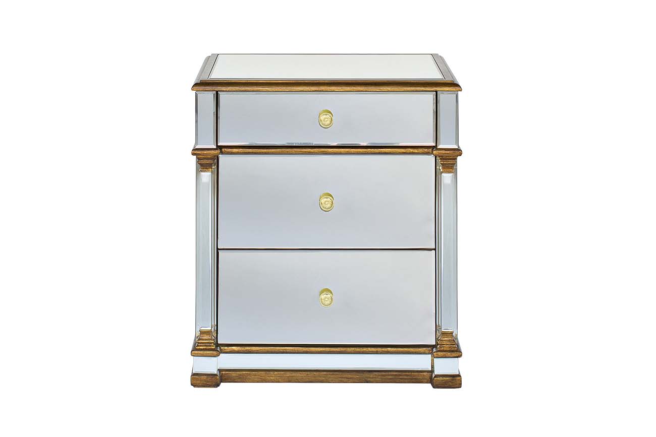 Если вам необходимо купить прикроватную тумбу для хранения вещей, но нет желания загромождать пространство, зеркальная мебель станет настоящей находкой. Три ящика предоставляют достаточно места для хранения необходимых вещей, а зеркальная поверхность столешницы, отражая размещенные на ней предметы, позволить создавать волшебные визуальные эффекты. При этом сама тумба будет оставаться практически невидимой. Прикроватная зеркальная тумба – стильный, модный и практичный элемент интерьера для вашей спальной комнаты.