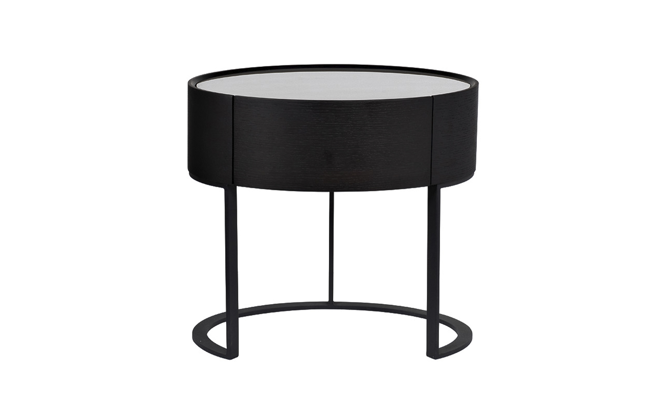 Дизайнерская тумбочка — классическое решение для хранения личных вещей в спальне и оригинальное дополнение современного интерьера. Изделие сочетает в себе изысканный дизайн, небольшие размеры и функциональность. Модель оснащена ящиком с надежным выдвижным механизмом, который можно использовать для хранения мелочей. Верх тумбочки имеет небольшой бортик, который предотвращает падение и соскальзывание личных вещей. Корпус тумбочки изготовлен из качественного МДФ темного цвета в сочетании с матовым белым стеклом столешницы. Основание тумбы выполнено в форме металлической дуги, что симметрично откликается с овальной формой столешницы. Такая форма делает изделие более изящным и оригинальным.