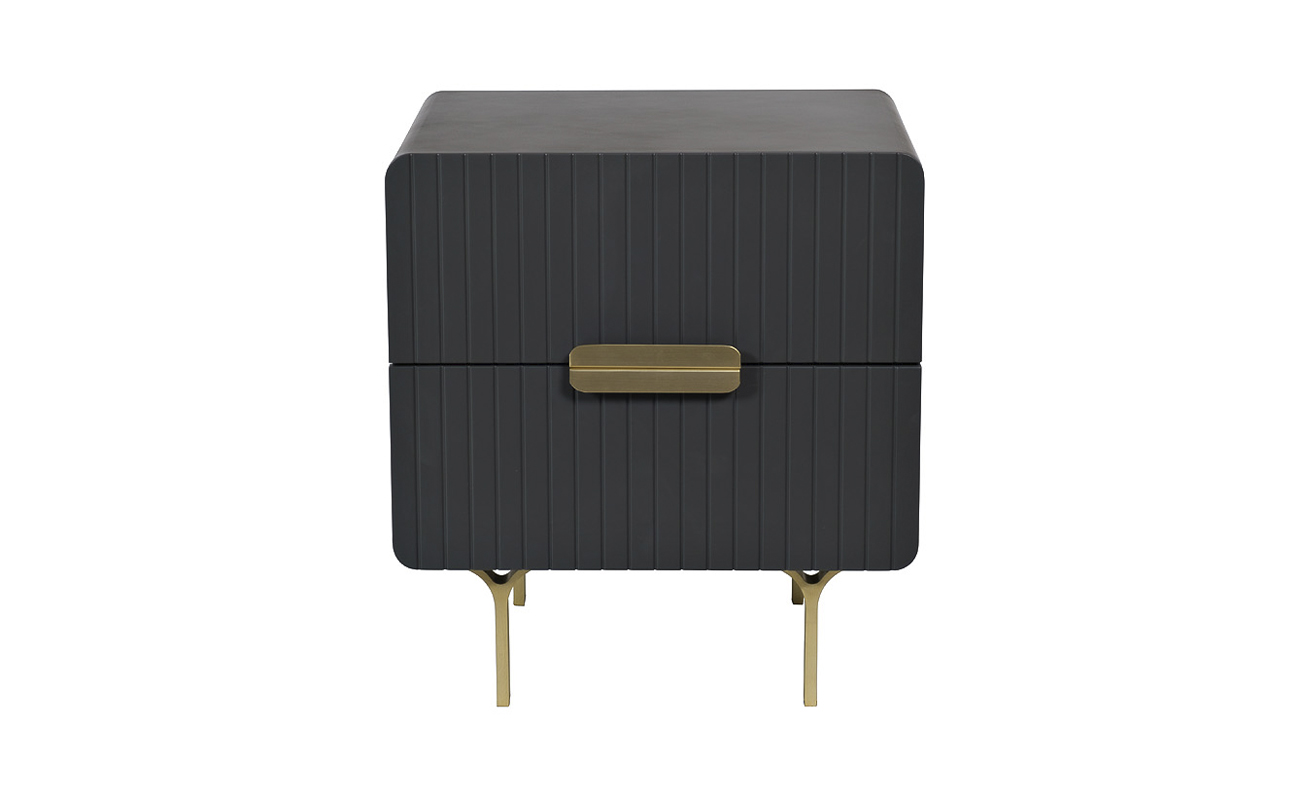 Серая тумбочка — стильное решение для оформления современного интерьера гостиной, спальни или кабинета. Модель будет органично смотреться как в большой гостиной, так и в помещении со скромным метражом. Изделие отличается не только презентабельным внешним видом, но и функциональностью, позволяя с максимальной пользой использовать свободное пространство. Тумбочка имеет два выдвижных ящика для хранения вещей. Фасад тумбочки выточен тонкими линиями и декорирован металлическими ручками латунного цвета, что придает ей некой изысканной футуристичности. В сочетании с ТВ-тумбой из этой же серии можно создать оформление в актуальных тенденциях интерьерного стиля.