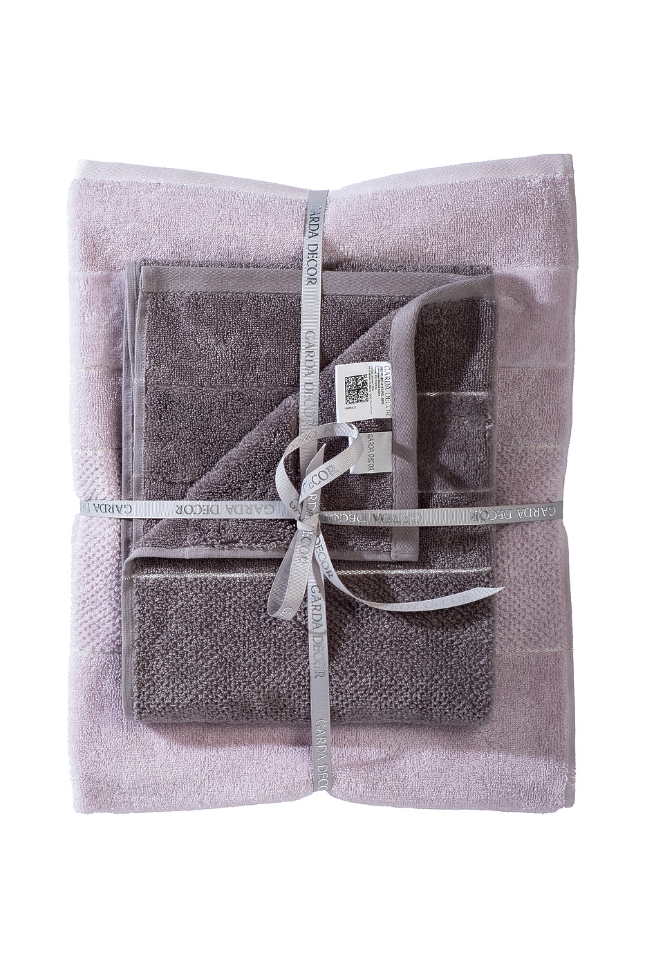 Махровое полотенце с густыми петлями выполнено из длинноволокнистого египетского хлопка. Благодаря премиальной пряже изделие обладает высокой воздухопроницаемостью и гигроскопичностью, быстро впитывает влагу и быстро сохнет. Обработка воздухом приподнимает махровые петли и делает их более пушистыми. Полотенце обладает плотностью 470-480 г/м². Изделие в сером цвете декорировано косичками из серебристого полиэфира и чередующимися полосами, переданными структурным переплетением «шашечкой», а также махровыми стрижеными и нестрижеными петлями.
