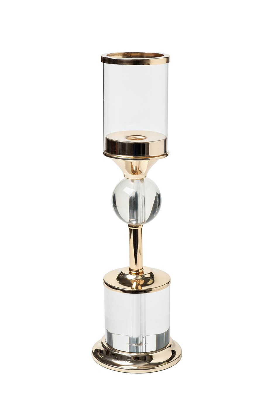 Подсвечник стеклянный на металлической ножке золотой