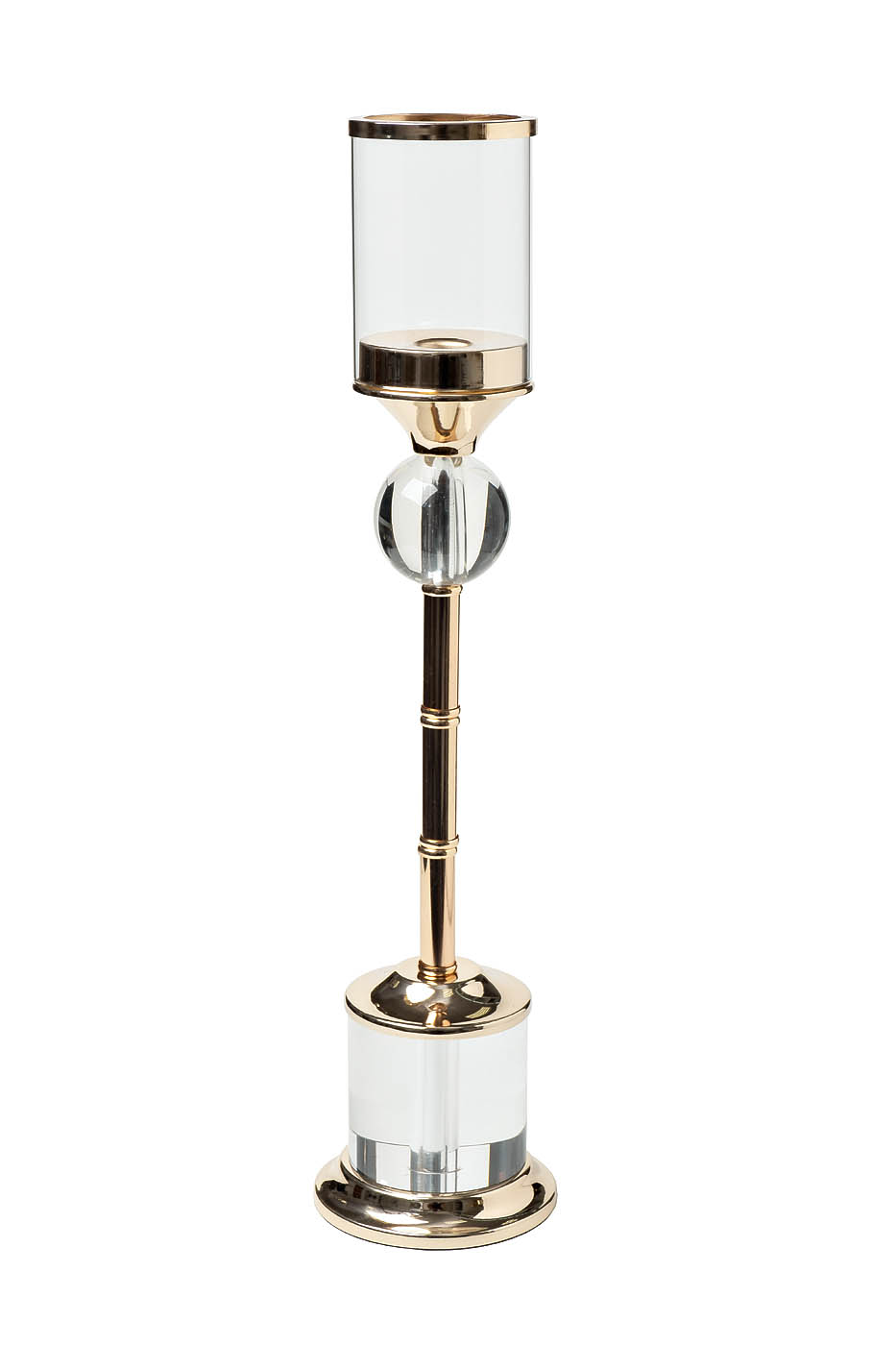 Подсвечник стеклянный на металлической ножке золотой