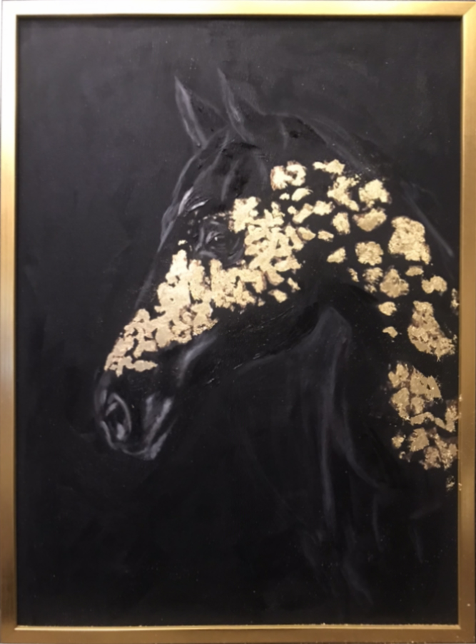 Тончайшие переходы монохромных оттенков, лирическая интонация, скрытая сила образа создают особую атмосферу произведения. Роскошное сочетание черного и золотого цветов в работе Ирины Воробьевой "Арабский скакун" подчеркивает красоту и необыкновенную грацию благородного животного. Панно станет изысканным авторским ацентом в вашем интерьере, прекрасным подарком другу, коллеге или возлюбленному.