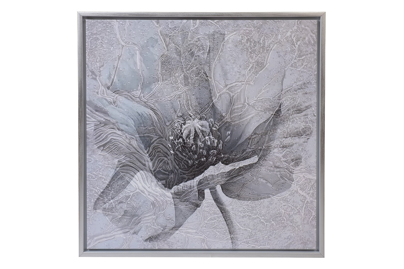 Холст "Голубой мак" в серебряном багете