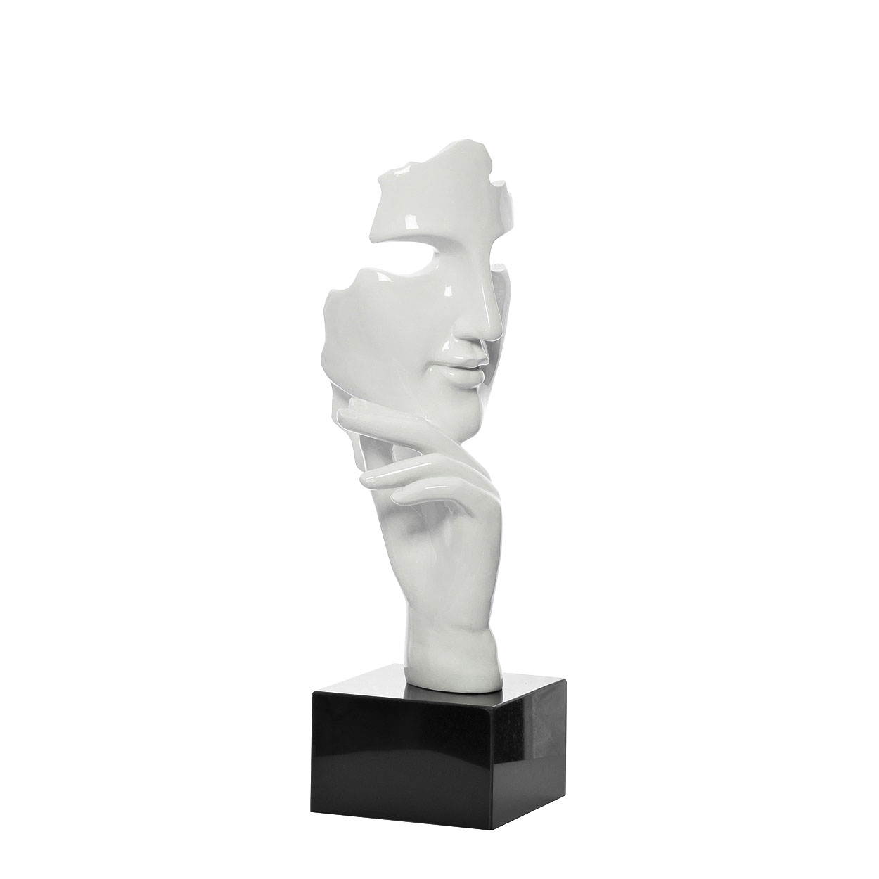 Вечная тайна человеческой души заключена в абстрактной маске "Загадка". О том, какие секреты кроются за мягкой улыбкой и гармоничным спокойствием черт, не дано узнать посторонним. Белое сияние полимерной смолы, из которой выполнена маска, контрастирует со строгим основанием черного цвета. Статуэтка станет прекрасным интерьерным украшением кабинета или гостиной в классическом стиле или стиле ар-деко.