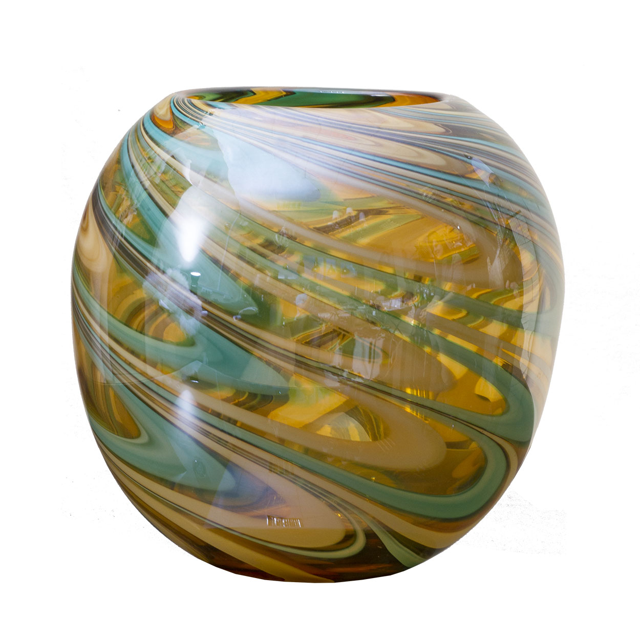 В доме у каждого должна быть декоративная ваза как минимум для того, чтобы было куда поставить цветы. Сейчас вазы используются не столько для практического применения, сколько для дизайна и обновления интерьера. Идеальный вариант для такого случая – это цветная стеклянная ваза. Интернет-магазин предлагает купить очень стильную и привлекательную модель в теплых желтых оттенках. Такая ваза излучает позитивный настрой и точно впишется в любой интерьер, выполненный в теплых расцветках. Декор в виде полукруглых полос действует успокаивающе. Такая круглая стеклянная ваза станет отличным вариантом подарка для мамы или бабушки.
