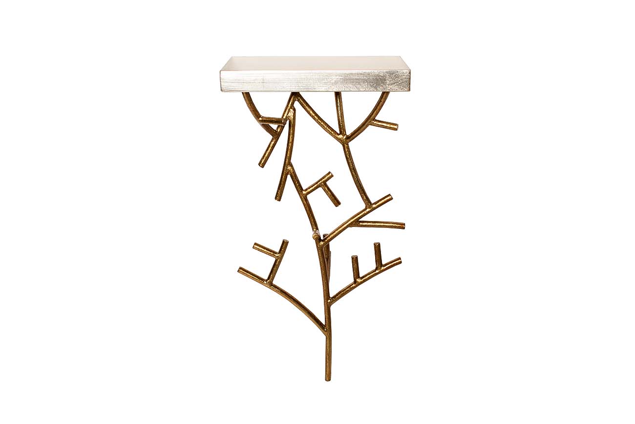 Изысканная дизайнерская полка, выполненная из дерева и металла, станет настоящим украшением интерьера. Полка покрыта тончайшими листьями фольги золотистого цвета и залакирована вручную по авторской технологии. Она прекрасно впишется в интерьер в стиле ар-деко, богемный шик или фьюжн, добавляя артистизма и буржуазного лоска в обстановку.