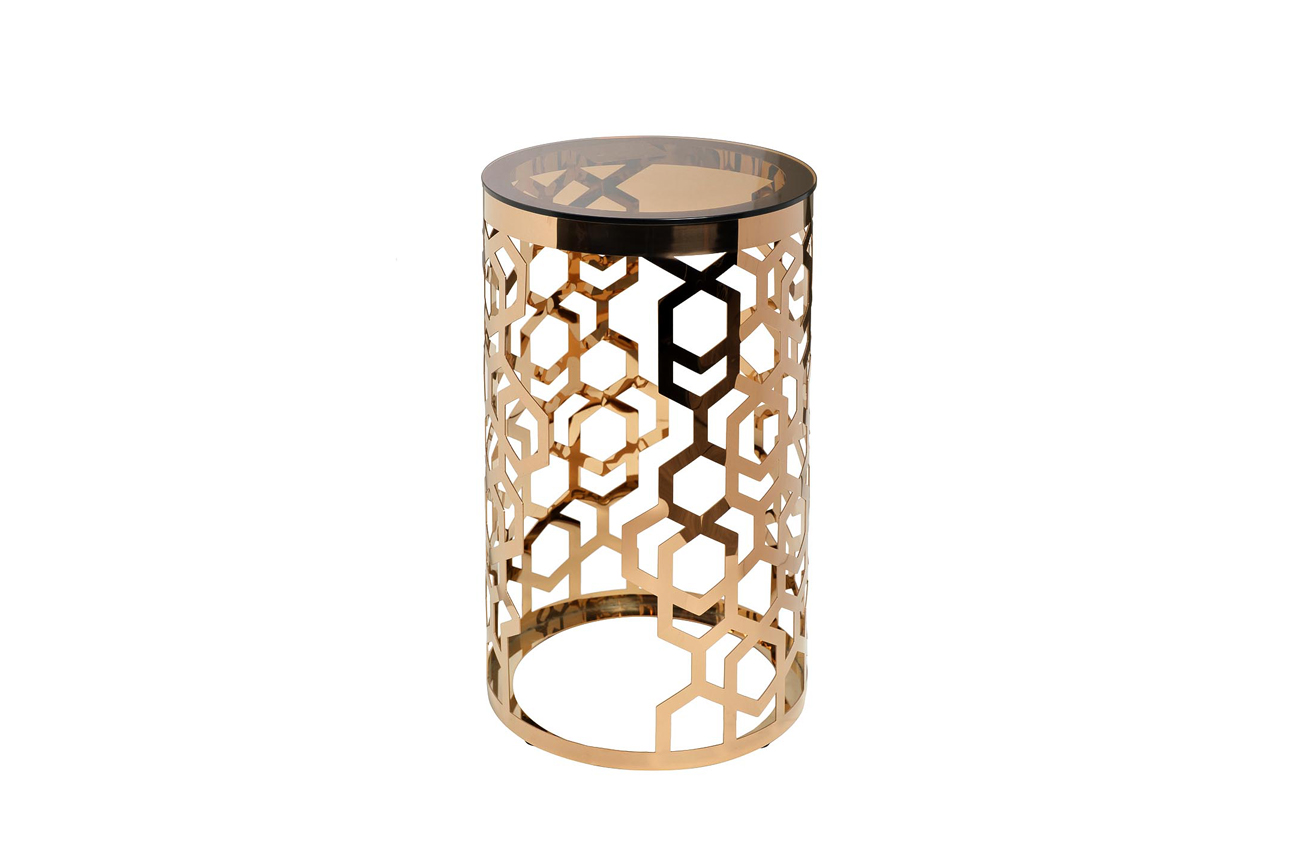 Столик журнальный круглый высокий с коричневым стеклом 13RXFS3053-GOLD