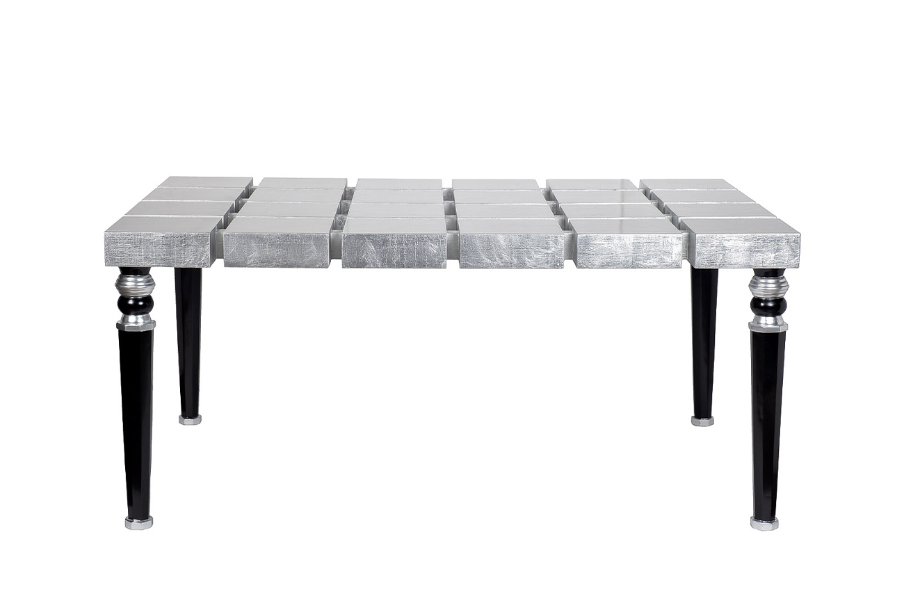 Этот стол обеденный станет украшением вашей столовой или гостиной. Столешница необычной формы состоит из серебристых прямоугольных блоков и прекрасно сочетается с изящными точеными ножками серебристо-черного цвета. Стол будет гармонично сочетаться с предметами мебели как в классическом стиле, так и в стиле арт-деко. Дизайнерский обеденный стол станет настоящей находкой для людей со вкусом, стремящихся создать неповторимый интерьер в своем доме.