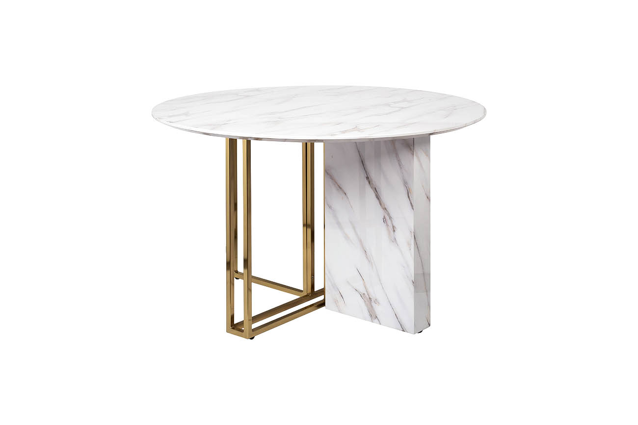 Круглый обеденный стол – это классический предмет мебели, за которым будут собираться все домочадцы и гости. Поэтому к его выбору стоит отнестичь серьезно. Каркас представленного стола выполнен из нержавеющего металла, столешница и вставка – из МДФ с имитацией мрамора. Белый круглый обеденный стол выглядит дорого и стильно. Но вместе с тем за счет использования недорогих, но качественных материалов, такая мебель является вполне доступной. К преимуществам обеденного стола под мрамор относится приемлемая стоимость, простота ухода и приятный внешний вид. В паре со столом-консолью 30B-848-2 можно создать элегантный ансамбль в столовой или гостиной.
