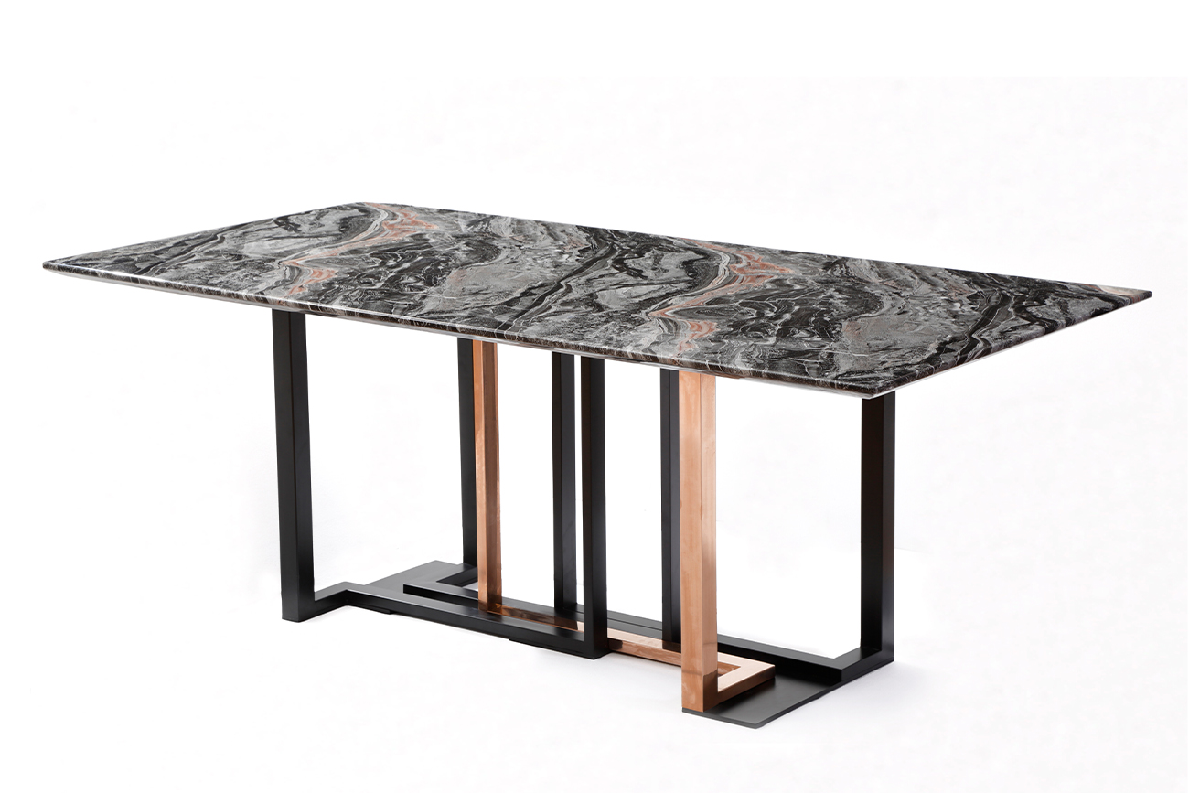 Обеденный стол Марсель со столешницей из природного камня, покрытой защитной пленкой из ПВХ, с основанием из нержавеющей стали - приобретение в стиле ар-деко для вашей столовой или гостиной. Сервированный хрусталем и фарфором, отражающий блеск свечей или красоту живых цветов он является воплощением Art de vivre - искусства жить, как говорят французы. Роскошный мраморный рисунок столешницы, сочетание полированного камня со стальными ножками оригинальной формы в черном и золотом цвете располагают как к изысканной трапезе, так и к утонченной беседе. Цвет изделия может незначительно отличаться от изображений на сайте в зависимости от цветопередачи вашего устройства.