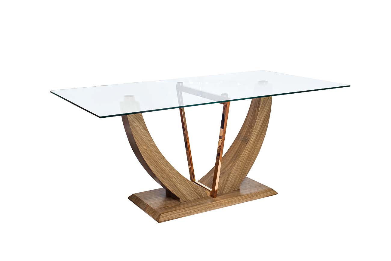 Оказывается, стол может быть не только практичным элементом интерьера, но и его украшением. Если вас интересует современный обеденный стол, который идеально впишется в один из современных интерьеров в стиле лофт или хай-тек, и без тени сомнений украсит ар-деко, обратите внимание на этот дизайнерский вариант. Очень редкое и сакральное сочетание, совмещенное в обеденном столе – стекло, дерево и металл, символизирует этапы человеческого прогресса. А элемент скульптурного творчества позволяет сделать этот стол акцентом гостиной комнаты. Обеденный стол со стеклом – это еще и возможность обойтись без традиционной скатерти, ведь такую красоту не стоит прятать под текстиль.