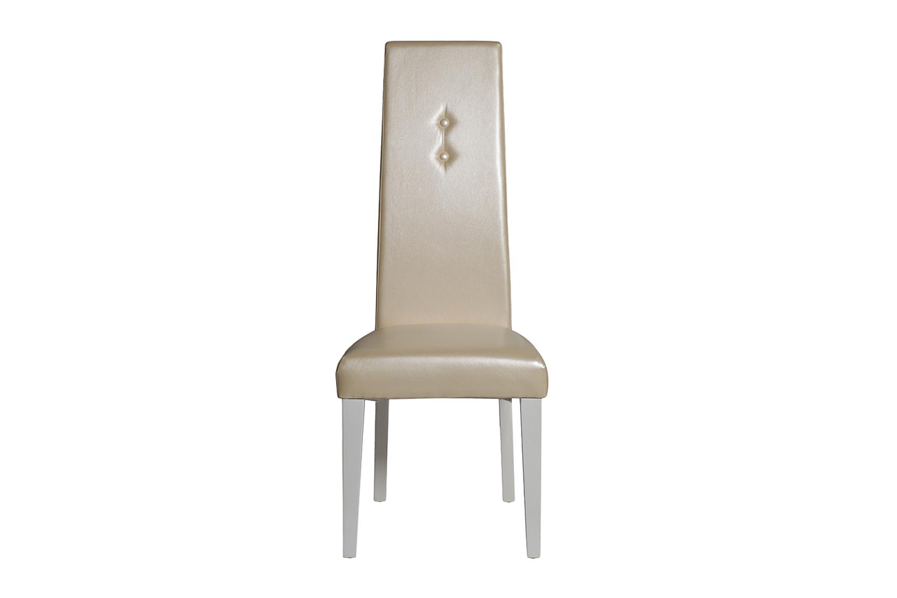 Высокий дизайнерский стул подойдет для аристократичной столовой или гостиной в современном стиле. Спинка и сиденье с обивкой из высококачественной экокожи жемчужного цвета мягко скруглены на углах, прочный каркас и ножки выполнены из натурального дерева. Стулья могут создать изысканный контраст с мебелью, выполненной в темных тонах или отделанной натуральным деревом, либо создать гармоничный ансамбль со светлой или белой лаковой мебелью.