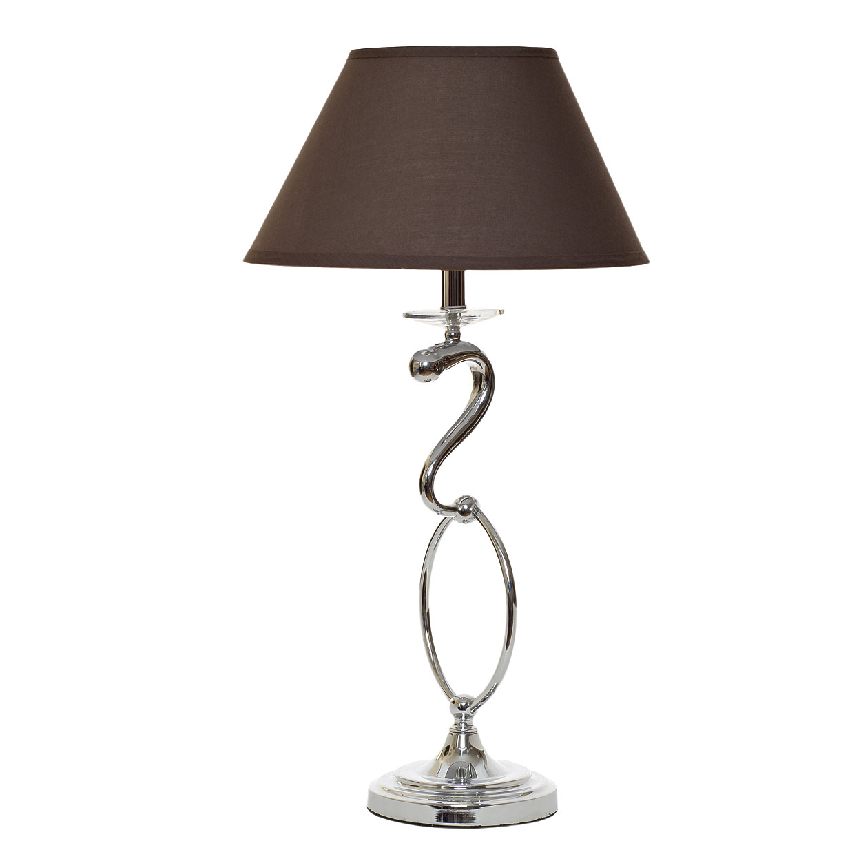 Настольный светильник на тонкой изогнутой ножке из хромированной стали станет прекрасным вариантом для любой спальни, так как превосходно смотрится на прикроватной тумбе. Впрочем, не возбраняется его использование и в интерьерах других комнат, настолько стильно он выглядит. Несмотря на то, что внешне такой осветительный прибор выглядит довольно хрупким, основание его очень надежно, а коричневого цвета абажур, выполненный из натурального льна, полностью соответствует тем функциям, которые на него возлагаются изначально – приятное приглушенное освещение, оказывающее расслабляющее воздействие перед сном, с его помощью обеспечивается в полной мере.