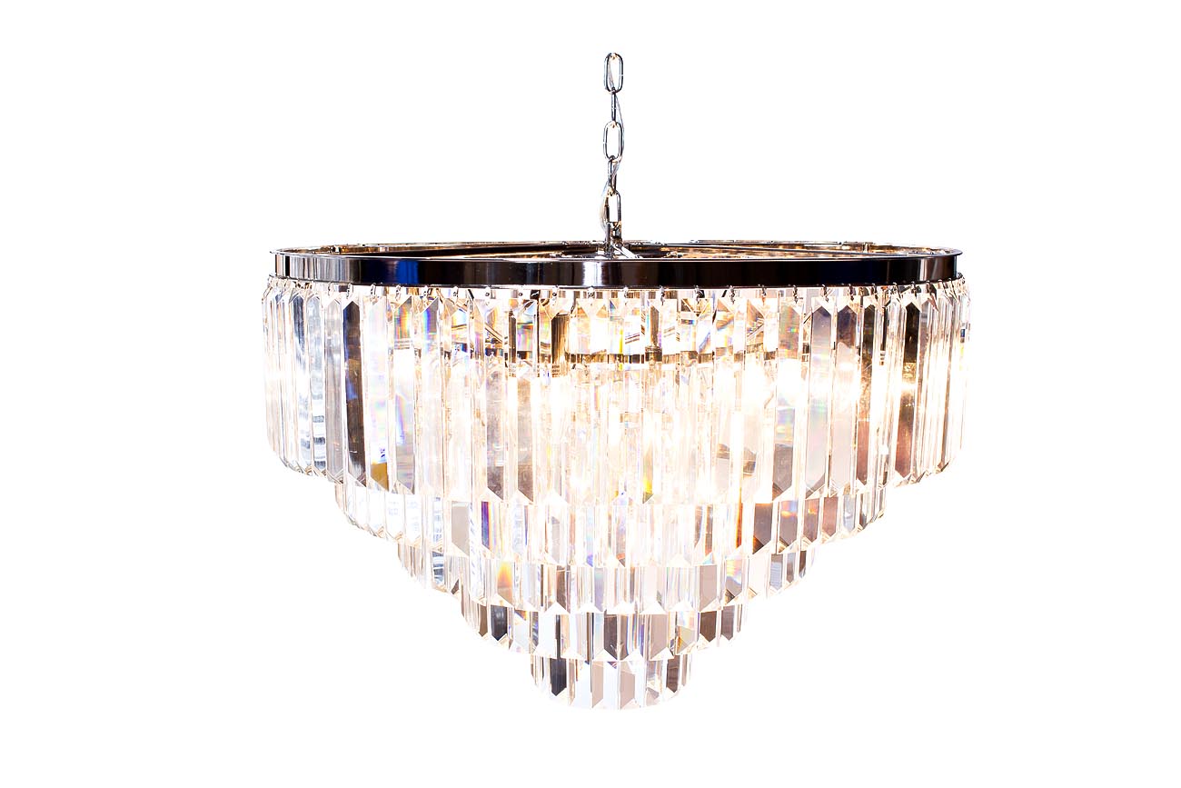 Стеклянная люстра может показаться чем-то обычным, классическим и совсем непримечательным, но современные версии могут поразить любого. Купить стеклянную люстру в Москве, которая будет отличаться от всех остальных своим роскошным дизайном, можно на нашем сайте. Подобная стеклянная люстра с прозрачными кристаллами, сочетающимися с корпусом в расцветке хром не оставит равнодушным предпочитающих нечто красивое, роскошное и изысканное. Люстра из стекла идеально впишется в спальню, гостиную, просторную столовую, оформленную в богемном стиле. Важно умело совместить все элементы декора. Рекомендуемая площадь освещения 35 м2.