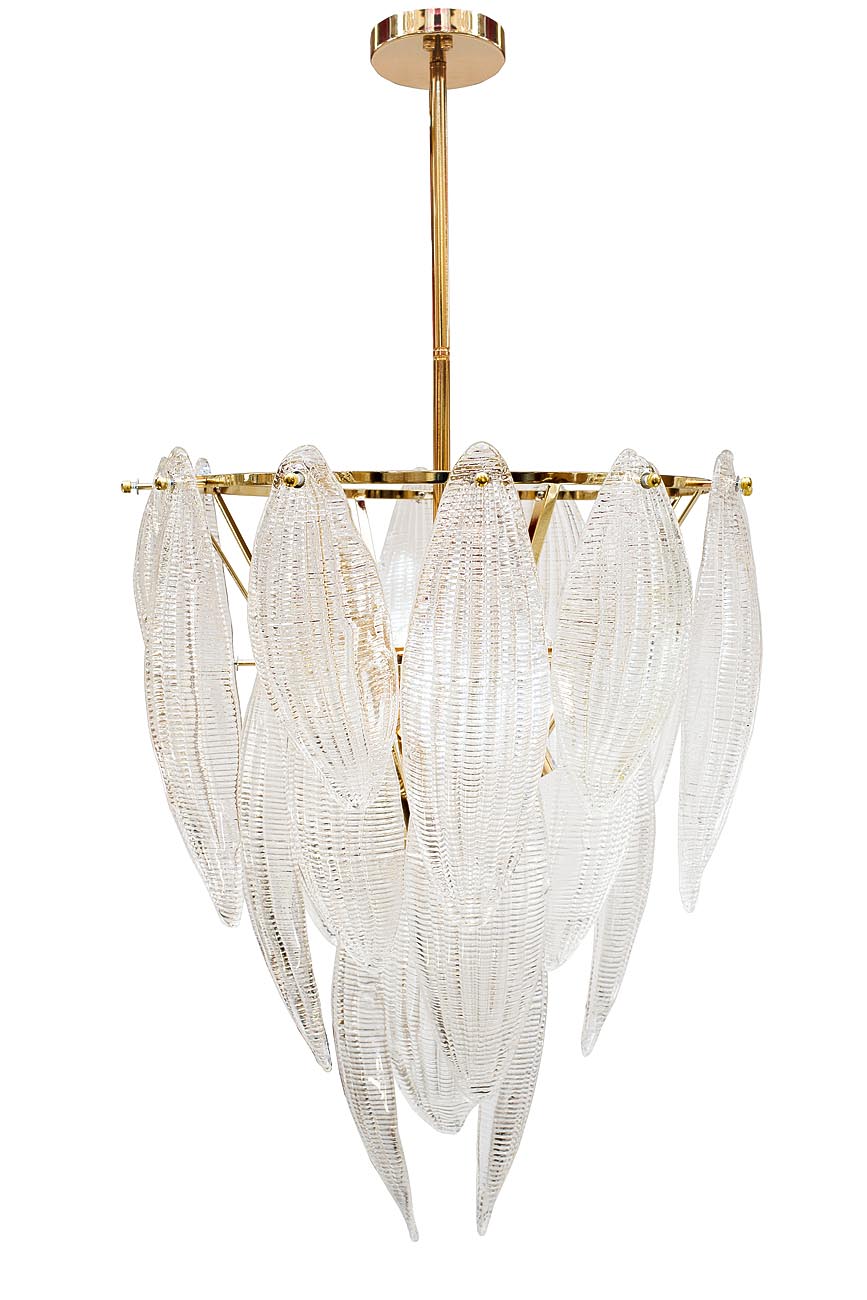 Изысканная стеклянная люстра с подвесами, выполненными в виде лепестков, служит источником основного освещения и украшением интерьера. Изящные лепестки светильника мягко рассеивают свет, создавая особенно уютную атмосферу в комнате. Для создания гармоничного ансамбля мы рекомендуем дополнить потолочный светильник одним или несколькими бра схожего дизайна, выполненными в виде цветка со стеклянными лепестками арт.K2KG02W-2G. Рекомендуемая площадь освещения 12 м2.
