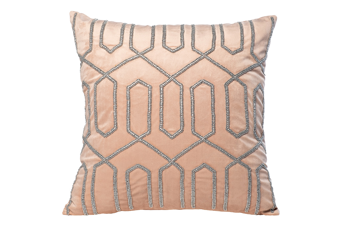 Подушка декоративная с бисером "Геометрия" розовая/серебро