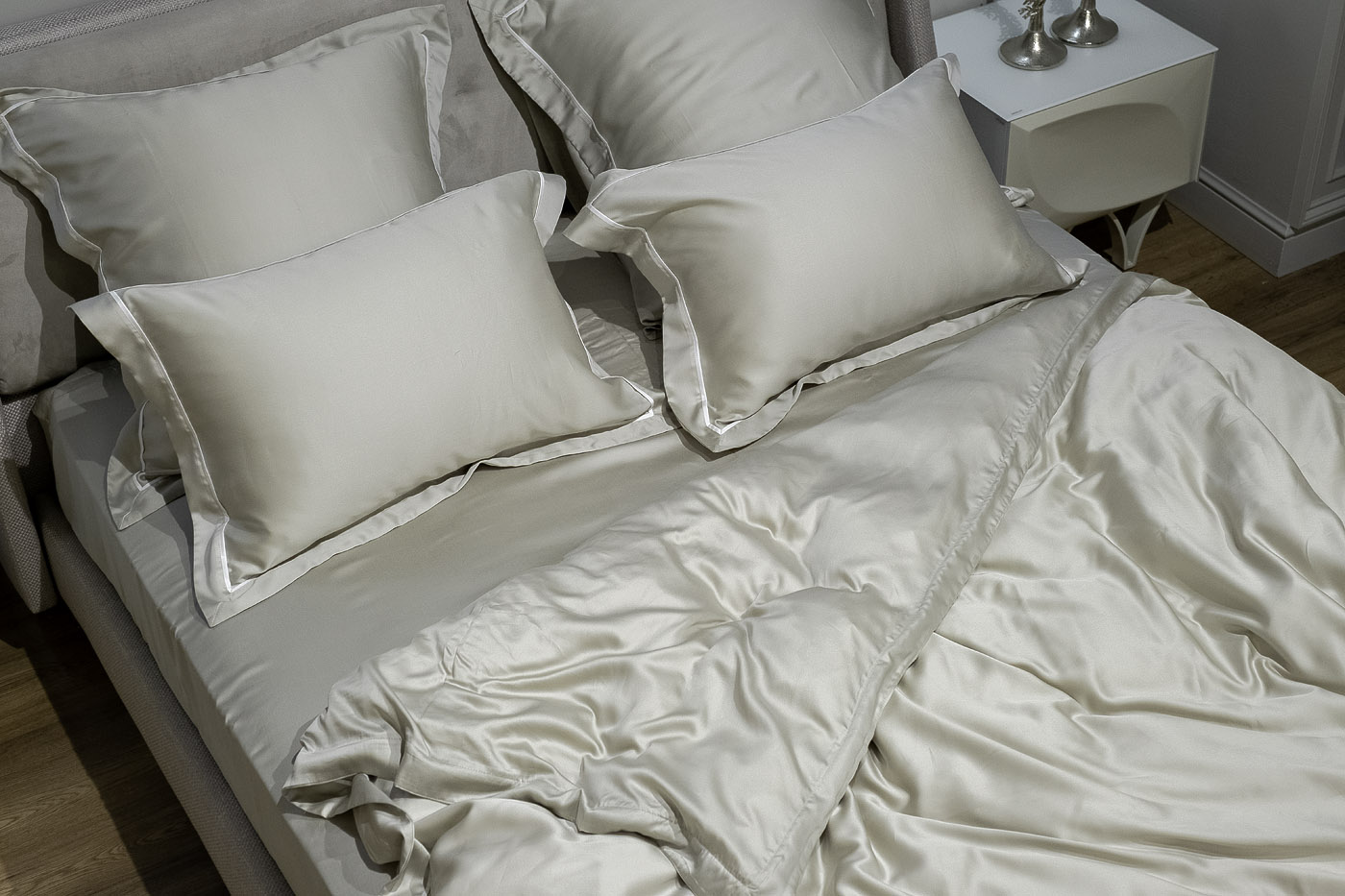Постельное белье из этой ткани – прохладное в жару и теплое в холодное время года, прочное и не мнущееся. Ткань гипоаллергенна и препятствует образованию бактерий.