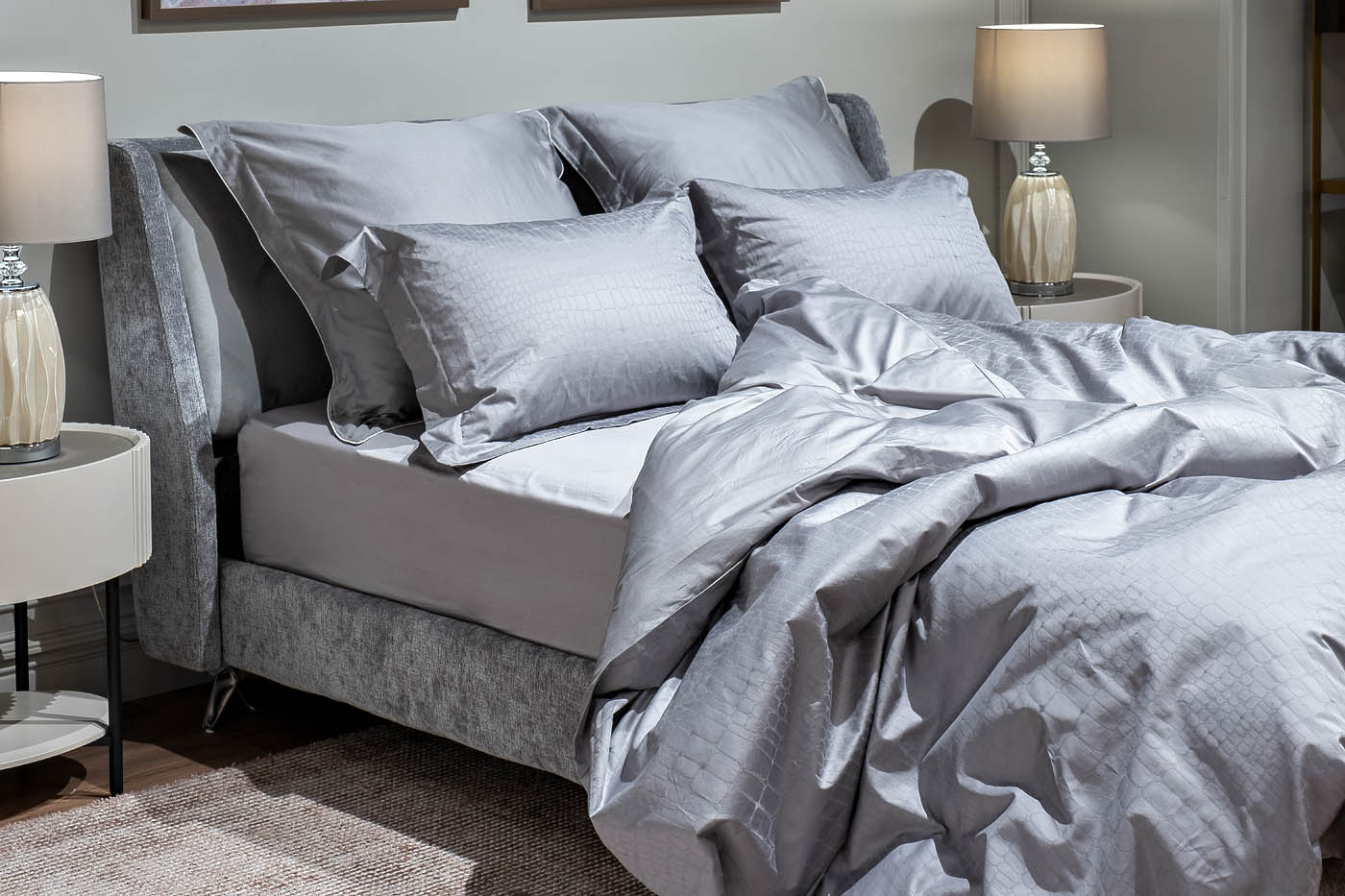 Простыня сатиновая 240х180см серая