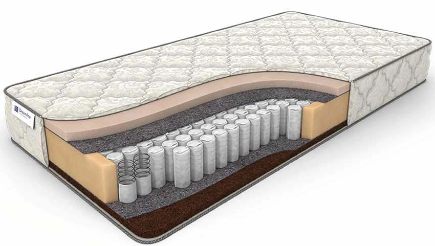 Сторона Б – праздник жёсткости, обеспечиваемой кокосовой койрой, пропитанной латексом. И все это смонтировано на независимом пружинном блоке TFK, отделённом от обоих слоёв изолирующим льноджутовым волокном.