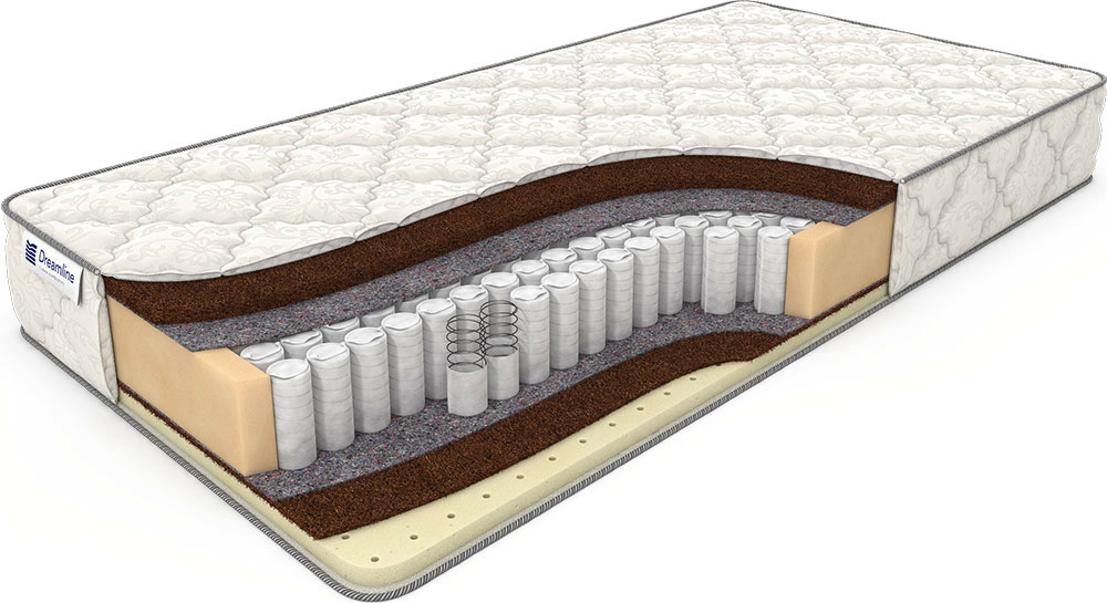 Матрас SleepDream Hard TFK с различными свойствами смонтирован на продвинутой модели независимого пружинного блока TFK, гасящего нежелательные колебания.