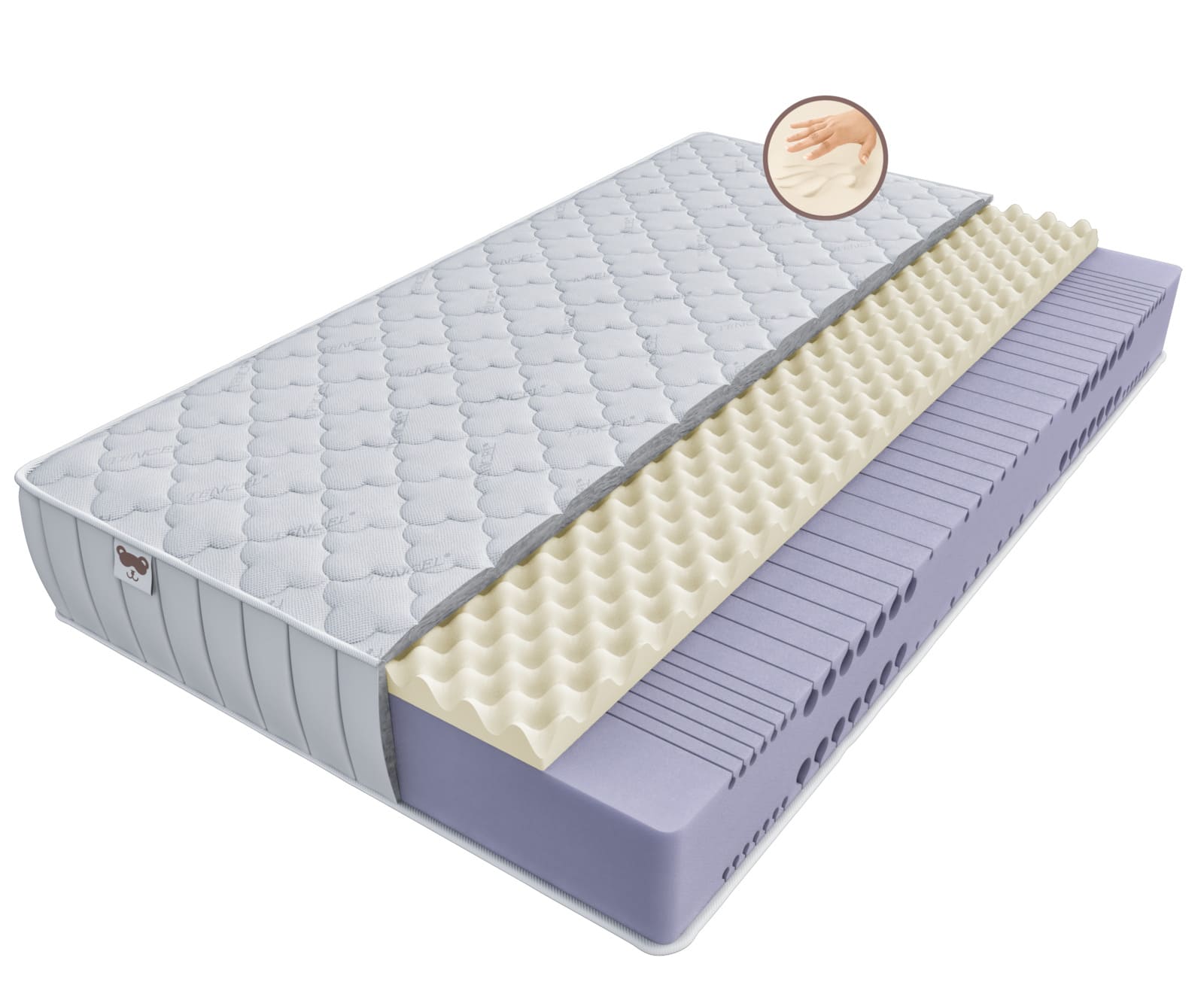 Пена Hi-Tech Foam «5 зон» - 5-зонная пена высокой плотности. 5 зон обладают разной степенью жесткости и обеспечивают равномерное распределение нагрузки от головы до ступней, индивидуально поддерживая каждую часть тела. Плавный переход от одной зоны к другой незаметен для спящего и создает все условия для естественного физиологического положения позвоночника, исключая эффект «гамака». Дышащий материал не накапливает в себе влагу и посторонние запахи, абсолютно гипоаллергенен и безопасен для человека.