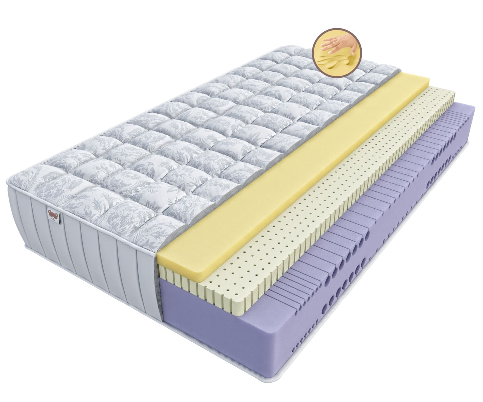 Натуральный латексСовременный упругий, пористый, гипоаллергенный и долговечный материал. Высокая эластичность латекса позволяет ему хорошо адаптироваться к форме тела человека, за счет чего снимается мышечное напряжение, позвоночник принимает правильное физиологическое положение и не нарушается микроциркуляция крови. |