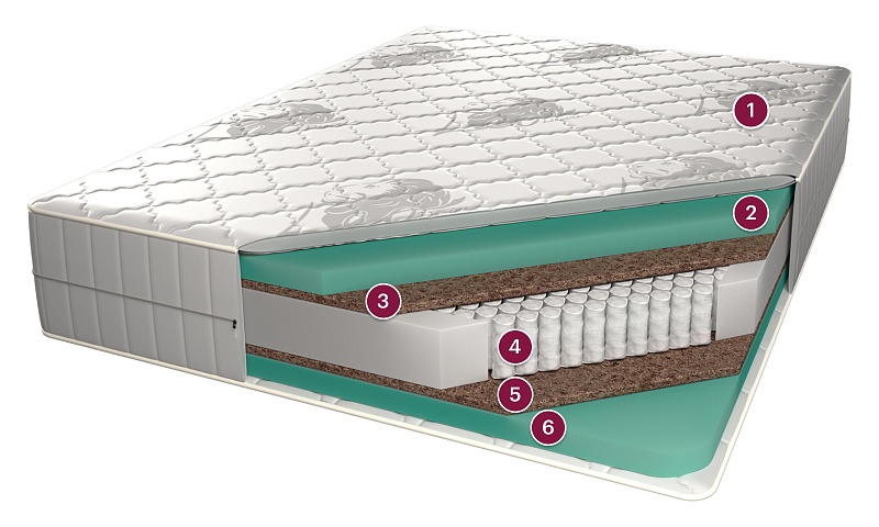 Состав ткани: 80% хлопок, 20% полиэстер Наполнитель: гипоаллергенное волокно холфитекс Комплектация: смотровая молния Внутри матраса используется дополнительный чехол безопасности, который продлит эксплуатационный период и защитит настилочные материалы от механического воздействия. Синтетический гипоаллергенный материал не имеющий аналогов среди материалов, применяемых в мебельной промышленности. Особенность этого материала в способности «запоминать» форму тела, оказывающего на него давление под действием тепла. Мемориформ подстраивается под контуры лежащего на матрасе человека и, «запомнив» его силуэт, не «выталкивает» его, не оказывает ответного давления. В результате появляется эффект невесомости, полное ощущение комфорта и отсутствие каких-либо проблем с недостатком кровоснабжения сосудов, которые ничто не сдавливает. На матрасе с наполнителем из мемориформа можно проспать всю ночь ни разу не перевернувшись на другой бок, вряд ли какой-нибудь другой матрас может «похвастаться» этим. Экологически чистый, долговечный природный материал, получаемый из межплодника ореха кокосовой пальмы, произрастающей в тропических районах Юго-Восточной Азии. Будучи натуральным материалом, койра, тем не менее, не вызывает аллергических реакций, и наоборот, выросшее под солнцем тропиков, кокосовое волокно впитало в себя огромный запас энергии, которая создает на много лет мощное благотворное биополе. В качестве наполнителя для матрасов кокосовая койра обеспечивает оптимальную упругость и долговечность матраса. Для устранения ломкости и увеличения срока эксплуатации, кокосовое волокно пропитывают латексом. На выходе получается монолитная плита: прочная и долговечная. Латексная пропитка позволяет выдерживать большие нагрузки и препятствует деформации и расслаиванию наполнителя. Пружинный блок «Актив» обеспечивает максимальный комфорт во время сна благодаря уникальной многослойной конструкции, каждый слой которой представлен определенным типом пружин: • Пружины «Актив», находящиеся в изначальном напряжение, снижают ответное давление на тело, обеспечивая удобство при любом положении и увеличивая прочность матраса; • Пружины оптимально распределяют давление и создают ощущение воздушности. • Самый маленький пружинный блок в мире высотой 30-40 мм при стандартном диаметре обеспечивает гибкость, эластичность и вентелируемость матраса и чаще всего используется в качестве верхнего слоя. Комбинация различных слоев, соединяемых между собой ультратонким слоем термоклея, позволяет создать идеальные условия для комфортного и здорового сна.