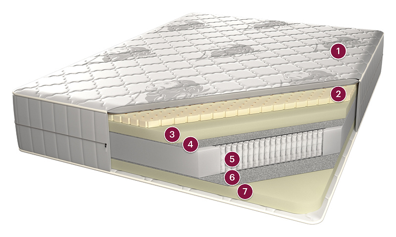 Состав ткани: 80% хлопок, 20% полиэстер Наполнитель: гипоаллергенное волокно холфитекс Комплектация: смотровая молния Внутри матраса используется дополнительный чехол безопасности, который продлит эксплуатационный период и защитит настилочные материалы от механического воздействия. Натуральный материал, представляющий собой вспененный экстракт сока каучукового дерева. Благодаря специальной обработке латекс приобретает микропористую структуру, подобную строению пчелиных сот, с заполненными воздухом ячейками. Динамические и статические характеристики латекса, его устойчивость к воздействию внешней среды, термостабильность и экологичность делают этот материал идеальным наполнителем для мягких матрасов. Синтетический гипоаллергенный материал не имеющий аналогов среди материалов, применяемых в мебельной промышленности. Особенность этого материала в способности «запоминать» форму тела, оказывающего на него давление под действием тепла. Мемориформ подстраивается под контуры лежащего на матрасе человека и, «запомнив» его силуэт, не «выталкивает» его, не оказывает ответного давления. В результате появляется эффект невесомости, полное ощущение комфорта и отсутствие каких-либо проблем с недостатком кровоснабжения сосудов, которые ничто не сдавливает. На матрасе с наполнителем из мемориформа можно проспать всю ночь ни разу не перевернувшись на другой бок, вряд ли какой-нибудь другой матрас может «похвастаться» этим. Прочный материал, он состоит из шерсти и синтетических волокон, которые соединены между собой и спрессованы при высокой температуре. Такая обработка придает высокую прочность и износоустойчивость. Прорыв на мебельном рынке — уникальный пружинный блок, обладающий собственным энергетическим полем. Конструкция блока состоит из разомкнутых концентрических лент независимых пружин. Эти концентрические ленты создают энергетические концентрированные поля, которые воздействуют на тело человека таким образом, что напряжения в мышечных тканях ослабляются. Концентрические ленты располагаются так, что энергетический эффект усиливается от края блока до его середины, а потом наоборот — уменьшается от середины блока до его края. Это неравномерное распределение концентраторов энергии по площади блока создает наиболее благоприятное воздействие на тело человека, с учетом его анатомических особенностей. Кроме того, располагаемые определенным образом концентрические ленты независимых пружин дополнительно увеличивают уровень поддержки спинной зоны человека. Запатентованное изобретение холдинга Consul выводит представление о комфорте и спальном месте на принципиально новый уровень, заменяя привычные пассивные блоки активной инновационной системой, благоприятно воздействующей на энергетическое поле человека.