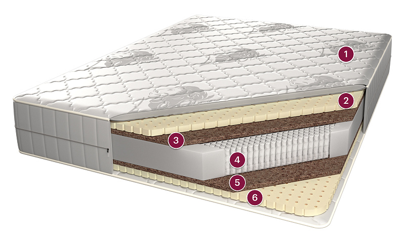 Состав ткани: 80% хлопок, 20% полиэстер Наполнитель: гипоаллергенное волокно холфитекс Комплектация: смотровая молния Внутри матраса используется дополнительный чехол безопасности, который продлит эксплуатационный период и защитит настилочные материалы от механического воздействия. Натуральный материал, представляющий собой вспененный экстракт сока каучукового дерева. Благодаря специальной обработке латекс приобретает микропористую структуру, подобную строению пчелиных сот, с заполненными воздухом ячейками. Динамические и статические характеристики латекса, его устойчивость к воздействию внешней среды, термостабильность и экологичность делают этот материал идеальным наполнителем для мягких матрасов. Экологически чистый, долговечный природный материал, получаемый из межплодника ореха кокосовой пальмы, произрастающей в тропических районах Юго-Восточной Азии. Будучи натуральным материалом, койра, тем не менее, не вызывает аллергических реакций, и наоборот, выросшее под солнцем тропиков, кокосовое волокно впитало в себя огромный запас энергии, которая создает на много лет мощное благотворное биополе. В качестве наполнителя для матрасов кокосовая койра обеспечивает оптимальную упругость и долговечность матраса. Для устранения ломкости и увеличения срока эксплуатации, кокосовое волокно пропитывают латексом. На выходе получается монолитная плита: прочная и долговечная. Латексная пропитка позволяет выдерживать большие нагрузки и препятствует деформации и расслаиванию наполнителя. Прорыв на мебельном рынке — уникальный пружинный блок, обладающий собственным энергетическим полем. Конструкция блока состоит из разомкнутых концентрических лент независимых пружин. Эти концентрические ленты создают энергетические концентрированные поля, которые воздействуют на тело человека таким образом, что напряжения в мышечных тканях ослабляются. Концентрические ленты располагаются так, что энергетический эффект усиливается от края блока до его середины, а потом наоборот — уменьшается от середины блока до его края. Это неравномерное распределение концентраторов энергии по площади блока создает наиболее благоприятное воздействие на тело человека, с учетом его анатомических особенностей. Кроме того, располагаемые определенным образом концентрические ленты независимых пружин дополнительно увеличивают уровень поддержки спинной зоны человека. Запатентованное изобретение холдинга Consul выводит представление о комфорте и спальном месте на принципиально новый уровень, заменяя привычные пассивные блоки активной инновационной системой, благоприятно воздействующей на энергетическое поле человека.