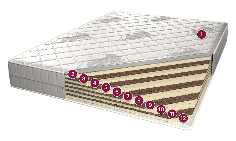Состав ткани: 80% хлопок, 20% полиэстер Наполнитель: гипоаллергенное волокно холфитекс Комплектация: смотровая молния Внутри матраса используется дополнительный чехол безопасности, который продлит эксплуатационный период и защитит настилочные материалы от механического воздействия. Экологически чистый, долговечный природный материал, получаемый из межплодника ореха кокосовой пальмы, произрастающей в тропических районах Юго-Восточной Азии. Будучи натуральным материалом, койра, тем не менее, не вызывает аллергических реакций, и наоборот, выросшее под солнцем тропиков, кокосовое волокно впитало в себя огромный запас энергии, которая создает на много лет мощное благотворное биополе. В качестве наполнителя для матрасов кокосовая койра обеспечивает оптимальную упругость и долговечность матраса. Для устранения ломкости и увеличения срока эксплуатации, кокосовое волокно пропитывают латексом. На выходе получается монолитная плита: прочная и долговечная. Латексная пропитка позволяет выдерживать большие нагрузки и препятствует деформации и расслаиванию наполнителя. Натуральный материал, представляющий собой вспененный экстракт сока каучукового дерева. Благодаря специальной обработке латекс приобретает микропористую структуру, подобную строению пчелиных сот, с заполненными воздухом ячейками. Динамические и статические характеристики латекса, его устойчивость к воздействию внешней среды, термостабильность и экологичность делают этот материал идеальным наполнителем для мягких матрасов.