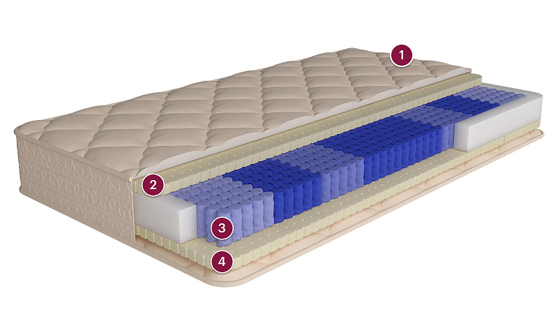 Состав: 80% хлопок, 20% полиэстер Наполнитель: гипоаллергенное волокно холфитекс Комплектация: смотровая молния Натуральный материал, представляющий собой вспененный экстракт сока каучукового дерева. Благодаря специальной обработке латекс приобретает микропористую структуру, подобную строению пчелиных сот, с заполненными воздухом ячейками. Динамические и статические характеристики латекса, его устойчивость к воздействию внешней среды, термостабильность и экологичность делают этот материал идеальным наполнителем для мягких матрасов. Блок независимых пружин с 7-ю зонами жёсткости 2S — Очень мягкая зона в независимом пружинном блоке (340 шт/м²) M — Средняя по жёсткости зона в независимом пружинном блоке (340 шт/м²) S — Мягкая зона в независимом пружинном блоке (340 шт/м²)