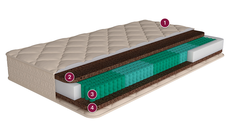 Состав: 80% хлопок, 20% полиэстер Наполнитель: гипоаллергенное волокно холфитекс Комплектация: смотровая молния Экологически чистый, долговечный природный материал, получаемый из межплодника ореха кокосовой пальмы, произрастающей в тропических районах Юго-Восточной Азии. Будучи натуральным материалом, койра, тем не менее, не вызывает аллергических реакций, и наоборот, выросшее под солнцем тропиков, кокосовое волокно впитало в себя огромный запас энергии, которая создает на много лет мощное благотворное биополе. В качестве наполнителя для матрасов кокосовая койра обеспечивает оптимальную упругость и долговечность матраса. Для устранения ломкости и увеличения срока эксплуатации, кокосовое волокно пропитывают латексом. На выходе получается монолитная плита: прочная и долговечная. Латексная пропитка позволяет выдерживать большие нагрузки и препятствует деформации и расслаиванию наполнителя. Блок пружин «Мультипакет» с 5-ю зонам жёсткости 2H — Зона повышенной жёсткости в пружинном блоке «Мультипакет» (660 шт/м²) H — Жёсткая зона в пружинном блоке «Мультипакет» (660 шт/м²)