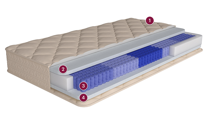 Состав: 80% хлопок, 20% полиэстер Наполнитель: гипоаллергенное волокно холфитекс Комплектация: смотровая молния Синтетический гипоаллергенный материал не имеющий аналогов среди материалов, применяемых в мебельной промышленности. Особенность этого материала в способности «запоминать» форму тела, оказывающего на него давление под действием тепла. Мемориформ подстраивается под контуры лежащего на матрасе человека и, «запомнив» его силуэт, не «выталкивает» его, не оказывает ответного давления. В результате появляется эффект невесомости, полное ощущение комфорта и отсутствие каких-либо проблем с недостатком кровоснабжения сосудов, которые ничто не сдавливает. На матрасе с наполнителем из мемориформа можно проспать всю ночь ни разу не перевернувшись на другой бок, вряд ли какой-нибудь другой матрас может «похвастаться» этим. Блок независимых пружин с 5-ю зонами жёсткости S — Мягкая зона в независимом пружинном блоке (340 шт/м²) 2S — Очень мягкая зона в независимом пружинном блоке (340 шт/м²) M — Средняя по жёсткости зона в независимом пружинном блоке (340 шт/м²)