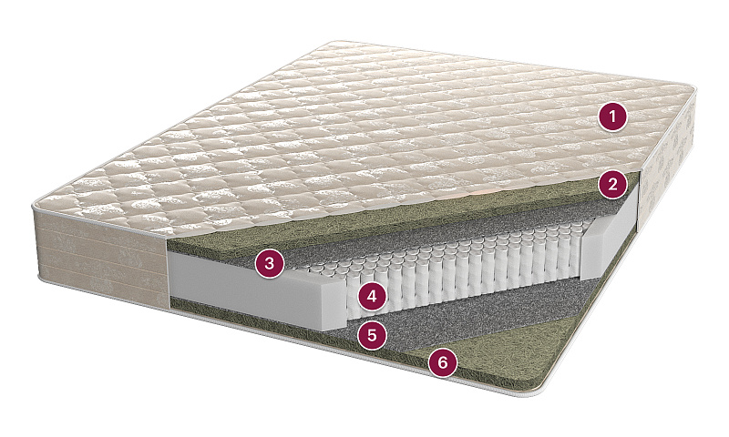 Состав ткани: 50% хлопок, 50% полиэстер Наполнитель: гипоаллергенное волокно холфитекс Лён, как растение, очень полезный и наши предки использовали его повсеместно. Материал обладает многими полезными и лечебными свойствами для организма. Лён — уникальное растение, которое является источником полноценного растительного белка, витаминов, микроэлементов и клетчатки. На льняных волокнах не образуется зарядов статического электричества, для сна это уверенный плюс. Эти и другие свойства делают лён полезным для здоровья человека, а изделия из него практичными в употреблении. Прочный материал, он состоит из шерсти и синтетических волокон, которые соединены между собой и спрессованы при высокой температуре. Такая обработка придает высокую прочность и износоустойчивость. Количество пружин на квадратный метр ровно 512 шт., что позволяет значительно усилить ортопедический эффект от использования матраса, обеспечить правильную анатомию позвоночника. Каждая пружина блока «Classic 512» упакована в отдельный «чехол» и под нагрузкой, сжимаясь, не оказывает никакого воздействия на соседние пружины, матрас прогибается в соответствии с весом различных участков тела человека. На матрасе с таким пружинным блоком будет удобно отдыхать в любом положении: на спине, животе или на боку. Части тела распределяться естественным образом, мышцы будут расслаблены, а позвоночник будет находиться в анатомически правильном положении.