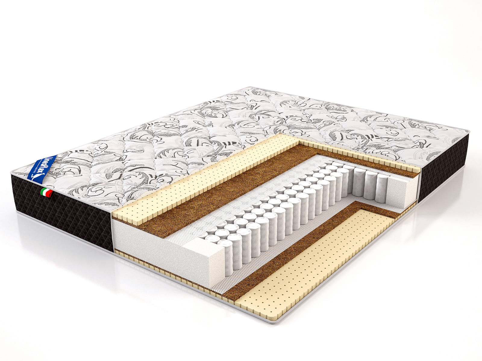 Пружинный матрас средней жёсткости на основе блока Magnifica с плотностью 500 пружин на спальное место. Кокосовая койра, натуральный латекс и спанбонд с двух сторон.