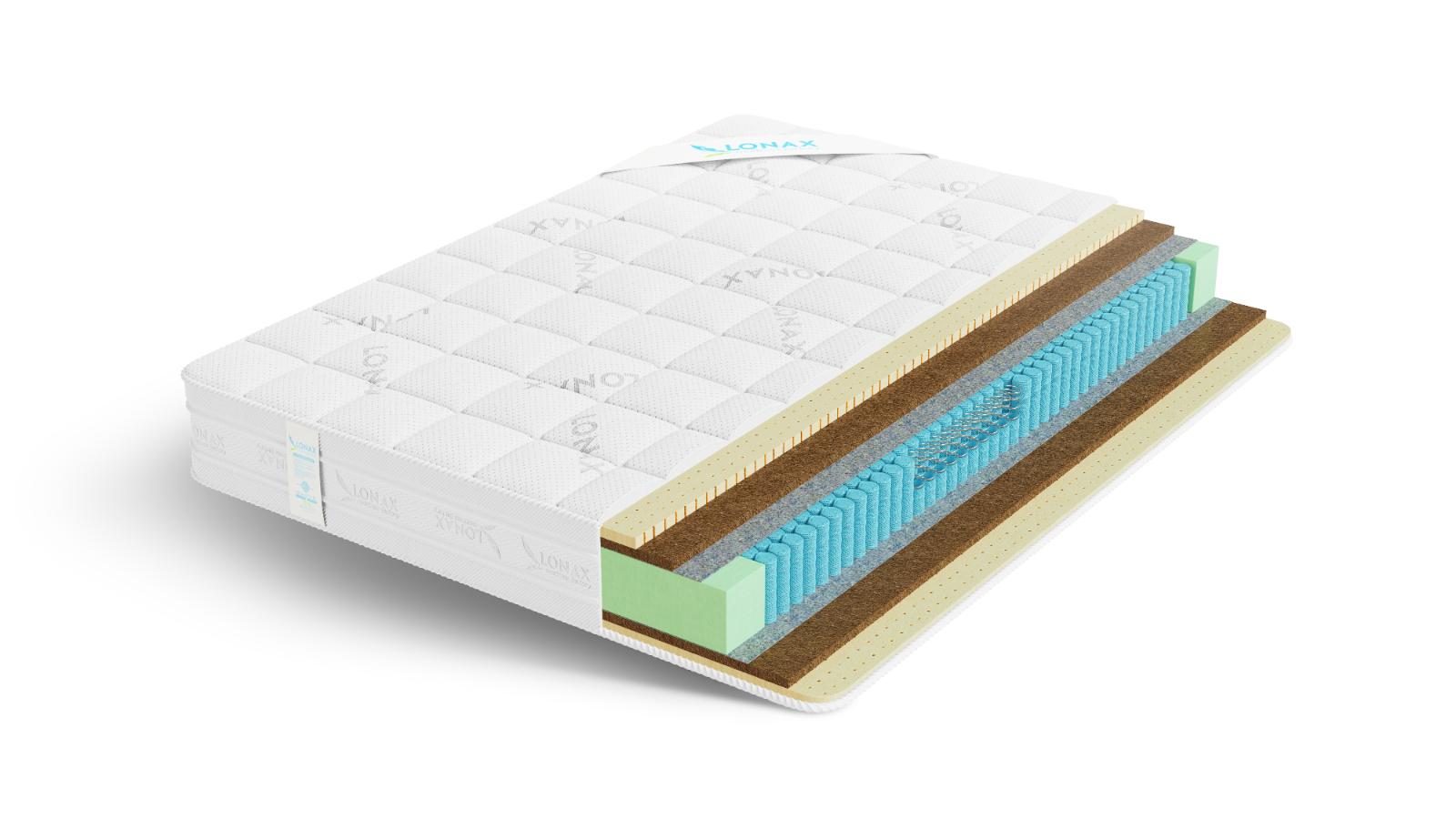 В матрасе Lonax Strong Medium S1000 используются мягкий натуральный латекс и жесткая латексированная кокосовая койра. Пружинный блок S1000 из отдельных независимых пружин, заключенных в тканевые чехлы из материала Спанбонд, повышает точечную эластичность (способность повторять форму тела) матраса. Допускается разновес более 30 кг. Жесткость данной модели выше, чем у Lonax Medium из-за более толстого слоя кокосовой койры и меньшего слоя натурального латекса.