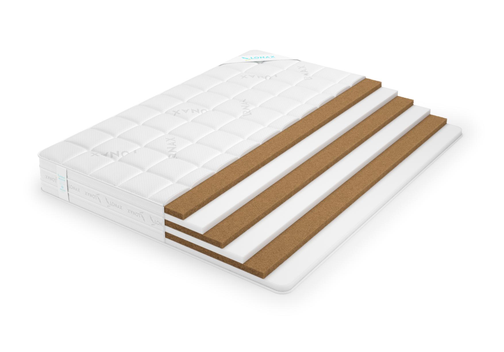 LONAX FUSION HOLO двусторонний беспружинный матрас, обеспечивающий комфортный и здоровый сон. Характеризуется удобством и универсальностью.Обзор конструкции и свойства основных составляющихВ качестве внутреннего наполнителя, отвечающего за уровень комфорта и степень жесткости, используется 3 слоя холлкона и 3 плиты натуральной кокосовой койры. Все прослойки расположены между собой поочередно, в виде сэндвича.Холлкон нетканый пружинистый материал, созданный путем термоскрепления тончайших искусственных волокон. Этот необычайно легкий наполнитель не мнется, не дает усадку, быстро возвращает свою первоначальную форму после деформации. Сохраняет тепло. Не воспламеняется.Латексированная кокосовая койра эластичная и долговечная. Выступает в роли усилителя жесткости. Хорошо вентилируется. Создает благоприятный микроклимат на спальной поверхности.Несъемный чехол из плотного, долговечного жаккарда. Обеспечивает сохранность внутреннего наполнения.Преимущества и особенностиУдобство, мягкость и комфорт, который дарит LONAX FUSION HOLO во время отдыха, заставляют потребителей останавливать свой выбор именно на нем. Кроме этого, матрас имеет другие преимущества:обладает ортопедическим эффектом, хорошо поддерживает позвоночник в анатомически правильном положении;минимизирует силу обратного давления, равномерно распределяя ее по всей площади соприкосновения;не содержит аллергенов, подойдет людям с чувствительной кожей или страдающим астмой;особенность материалов исключает возможность развития пылевых клещей, грибков;не производит статическое электричество, не притягивает пыль;...