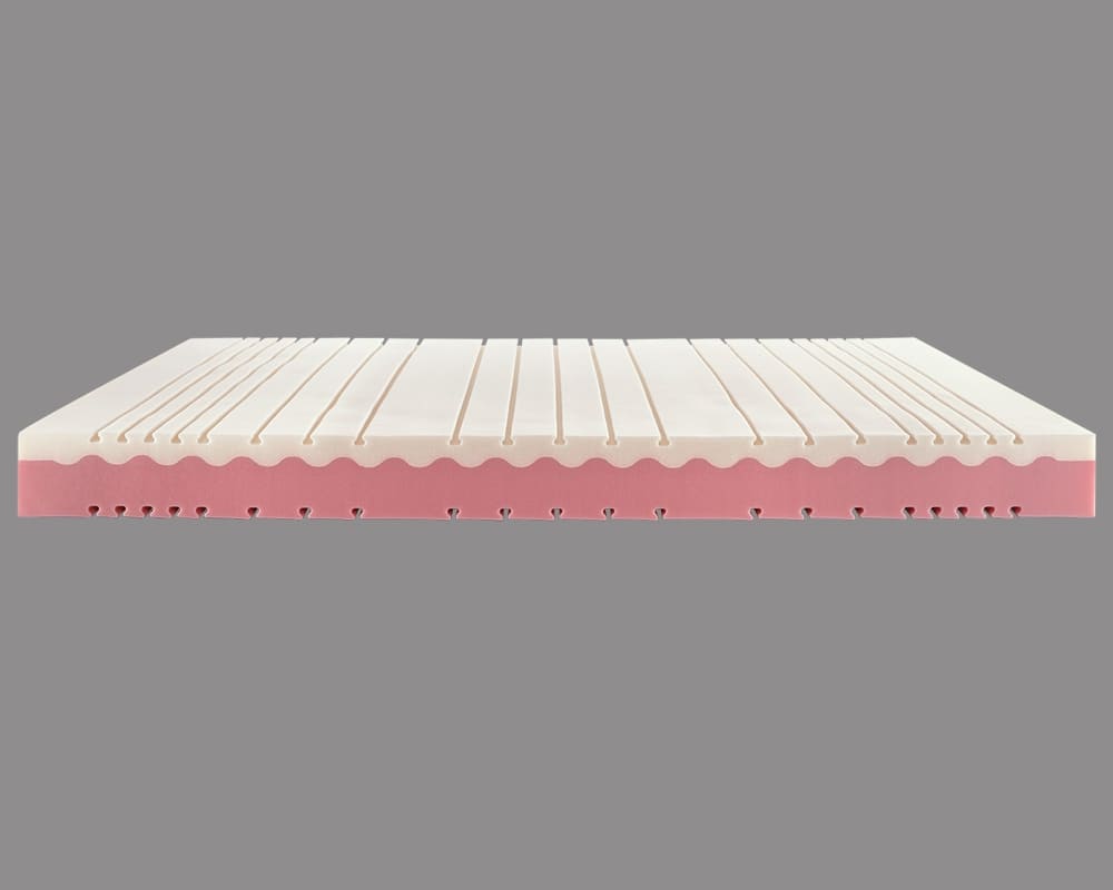 Слой Мemory Аir c высокой воздухопроницаемостью. равномерно распределяет вес, снимая напряжение, способствует натуральному положению тела во время отдыха. Экологически чистый, стойкий к деформации, антибактериальная обработка. Специальные отверстия для достижения дифференцированых зон жесткости. Плотность 50 кг/куб.м. Толщина 5,5 см.