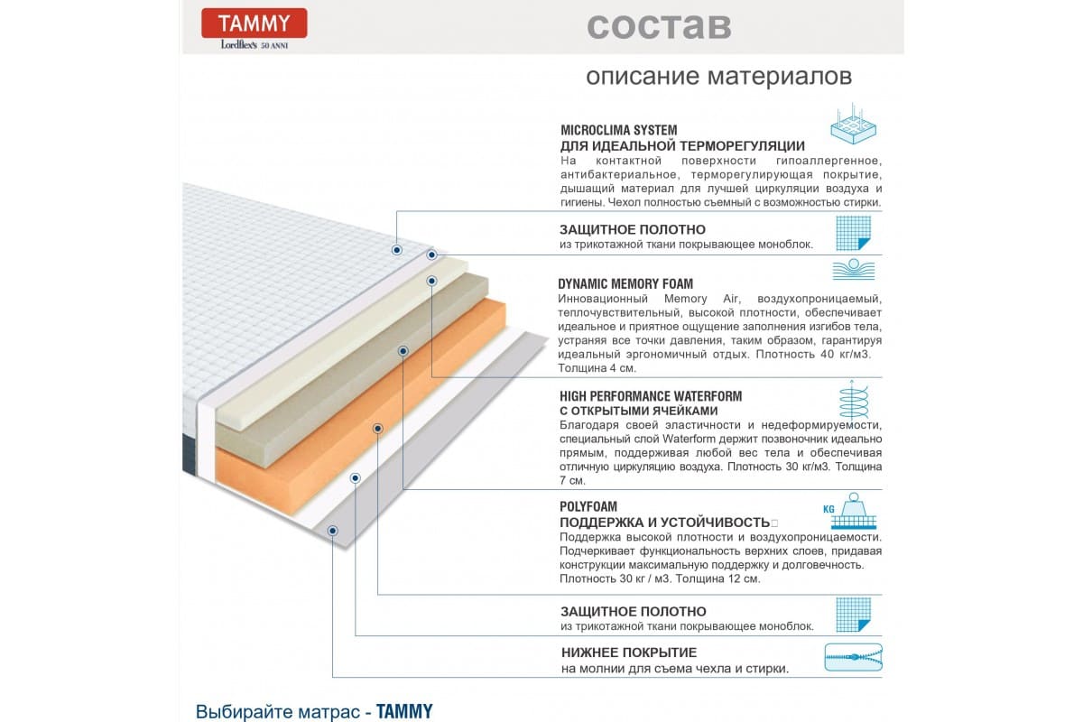 Матрас Lordflex's Tammy Эргономичный беспружинный матрас производства фабрики Лордфлекс (Италия).