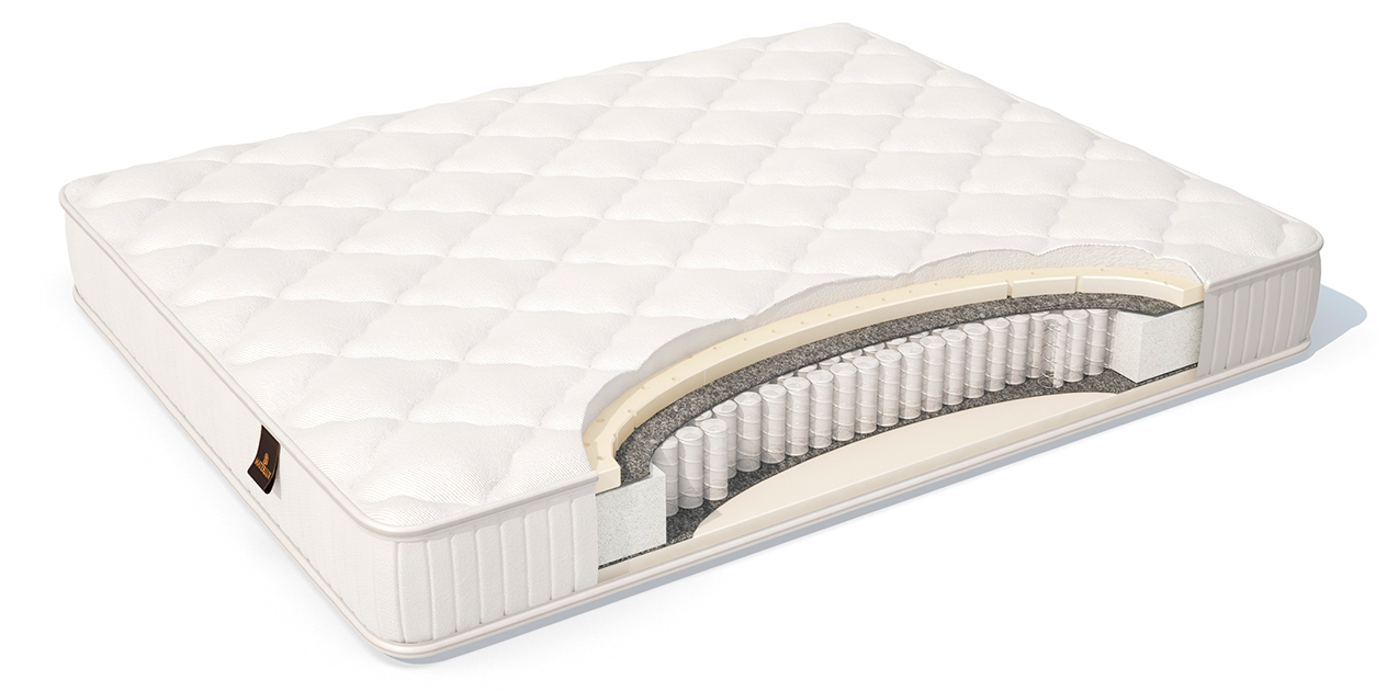 Стандартный независимый пружинный блок, на одно спальное место приходится 520 пружин. В такой конструкции пружины не связаны между собой и заключены в индивидуальные чехольчики из сверхпрочного материала – файбертекса, который защищает каждый элемент и слои матраса от повреждений. Каждая пружинка работает автономно: