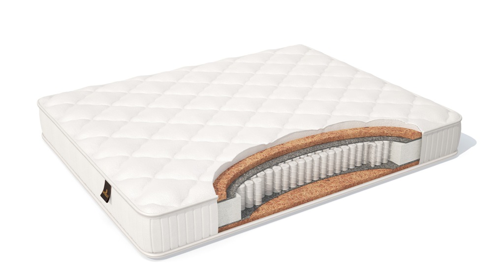 Латексированная койра 100 плотности еще более твердая и выносливая, она дополняет поддерживающие свойства матраса, перераспределяет нагрузку на пружины. И койра, и фетр известны своей долговечностью. Конструкция хорошо проветривается, не накапливает пыль и влагу.