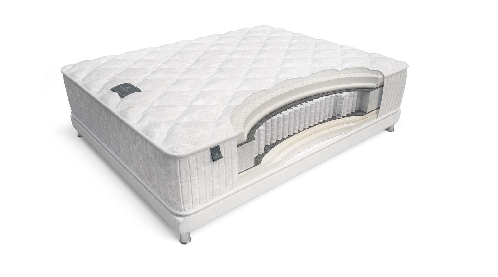 Пружинный матрас с прослойкой из инновационного материала эрголатекса, обладающего легким массажным эффектом.