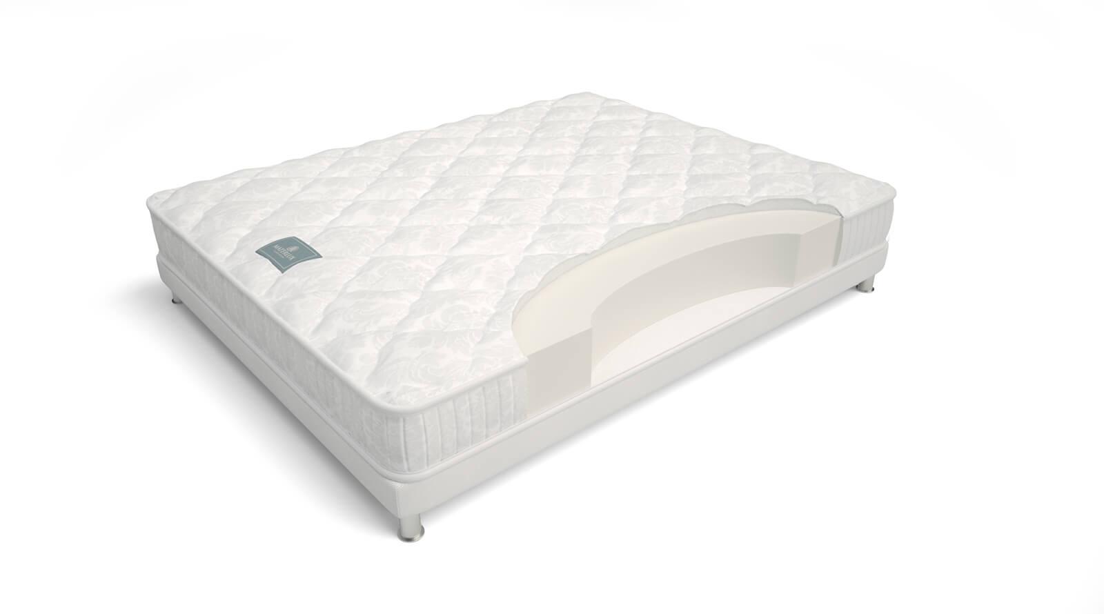 Без пружинБеспружинная основа матраса обладает пониженной упругостью. Беспружинные матрасы дают более плотную опору, чем пружинные. |