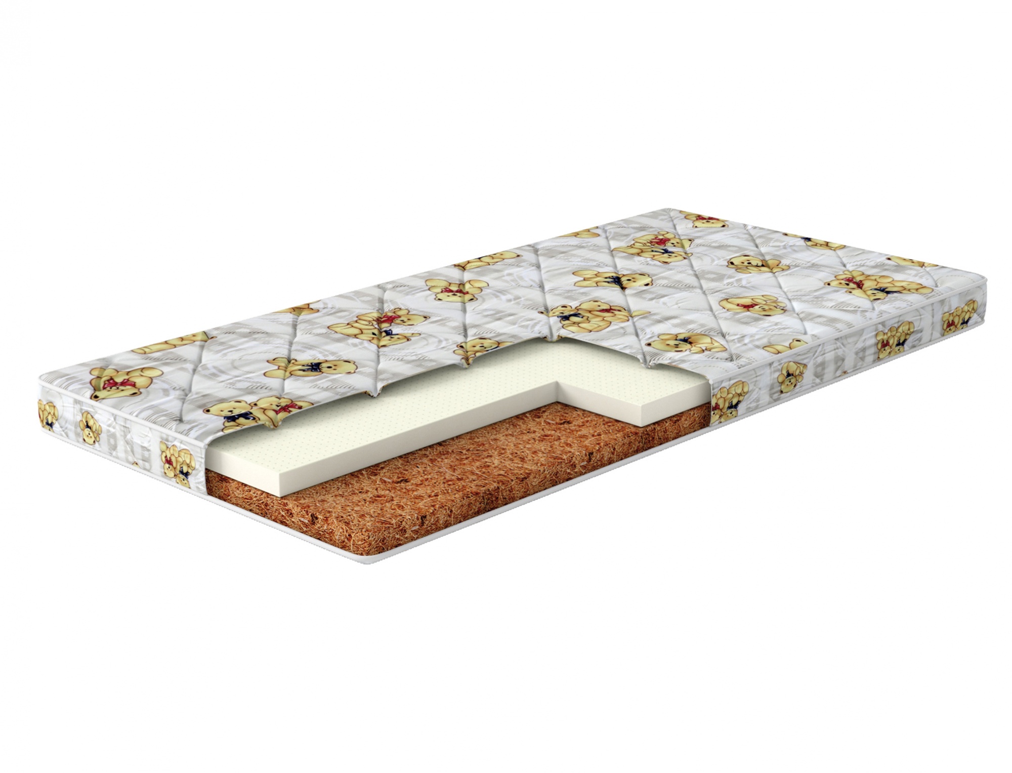 Способствует формированию правильной осанки. Более жесткая сторона на основе плиты из кокосовой койры предназначена новорожденным, эластично скрепленные волокна кокоса равномерно распределяют нагрузку. Более мягкая, с натуральным латексом, обеспечит комфортный и здоровый сон малышам постарше.